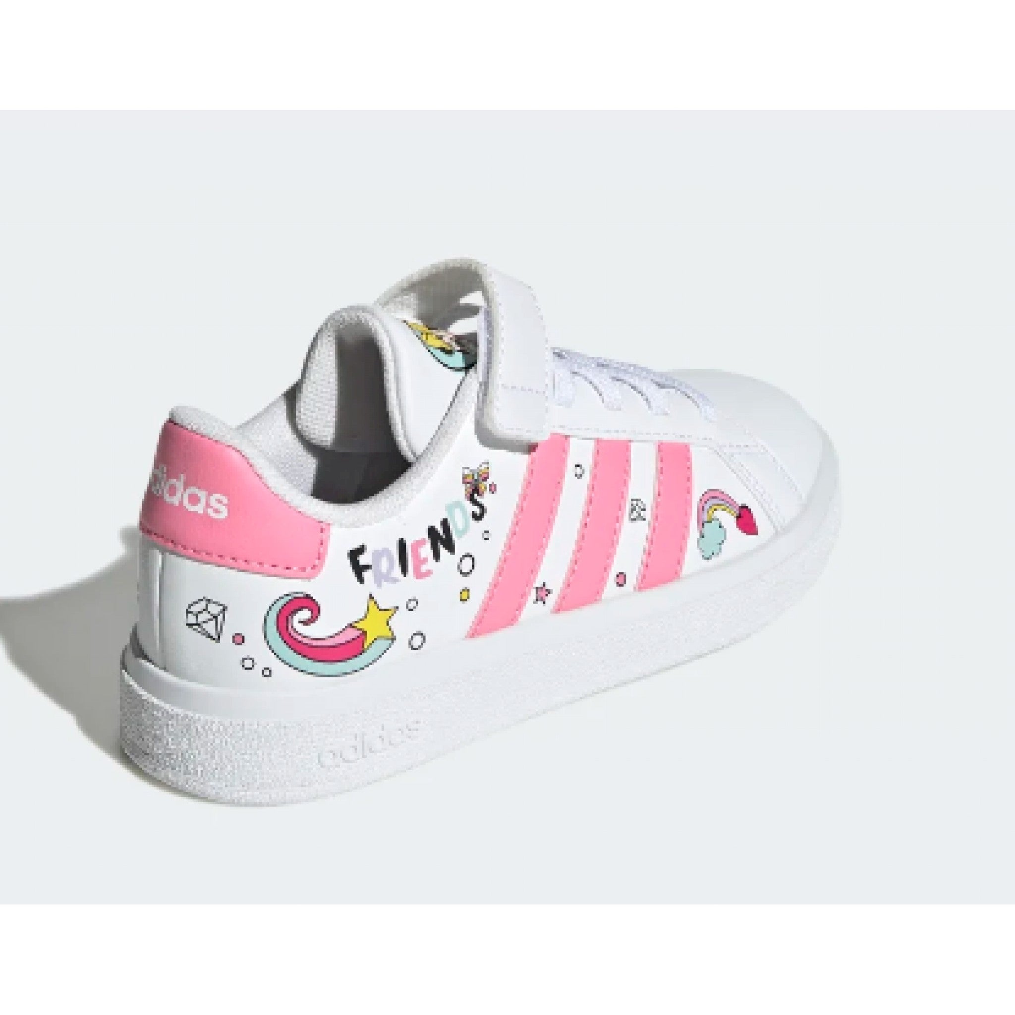gli amici sono più forti insieme. ecco perché queste sneaker adidas per bambini e bambine celebrano le amiche disney minni e paperina. i colori accesi le rendono immediatamente riconoscibili e la chiusura a strappo assicura massima praticità.