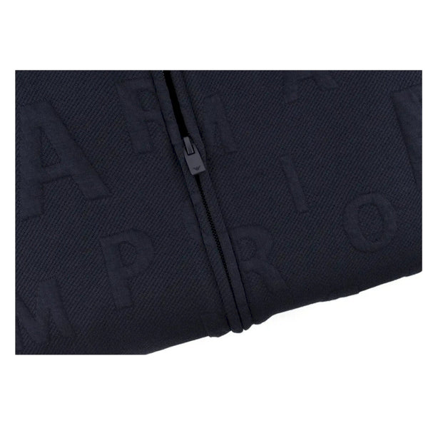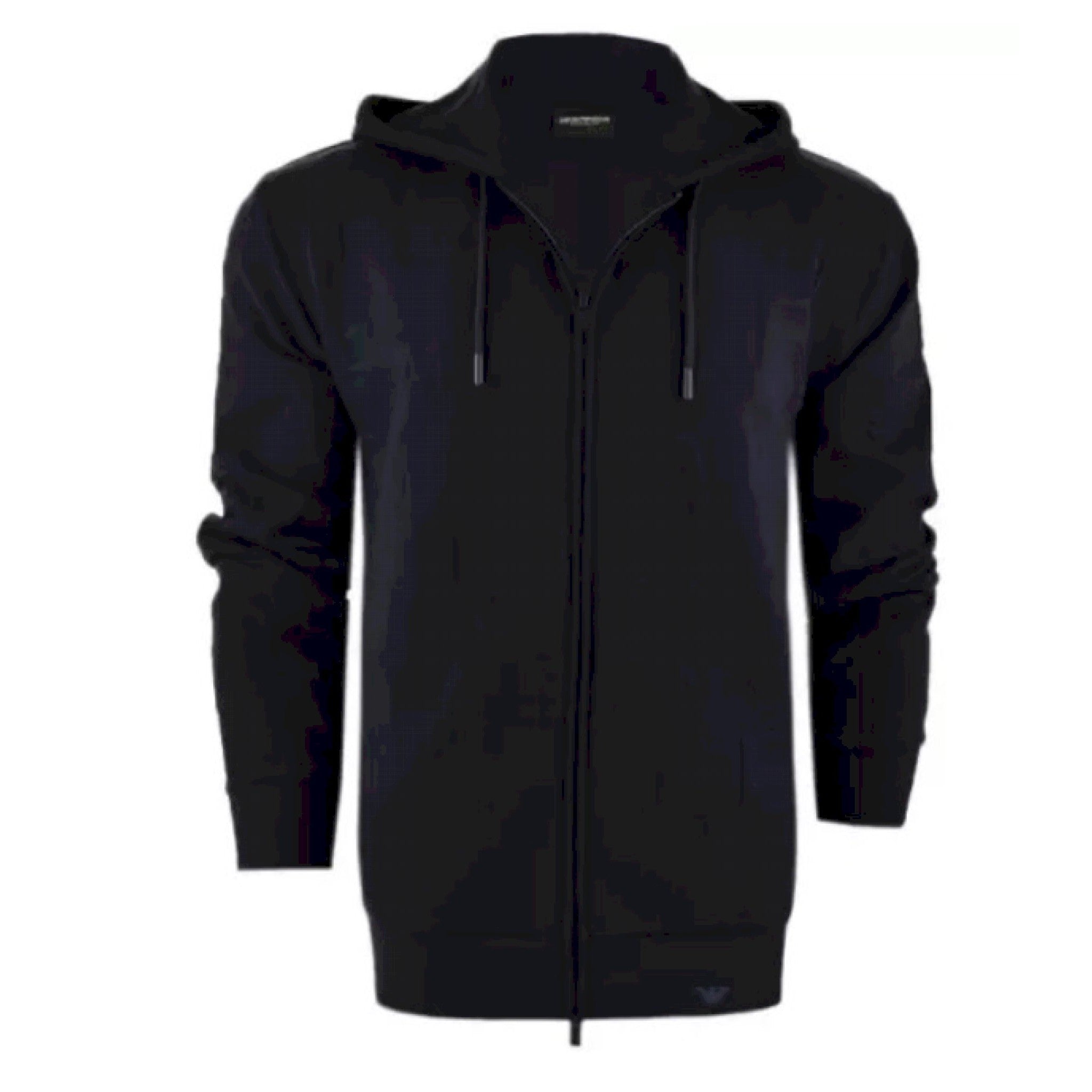 Felpa fullzip con cappuccio e tasche a filo, realizzata in filato di cotone misto a poliestere ed elastico. la giacca presenta il logo dell'azienda della collezione emporio armani.