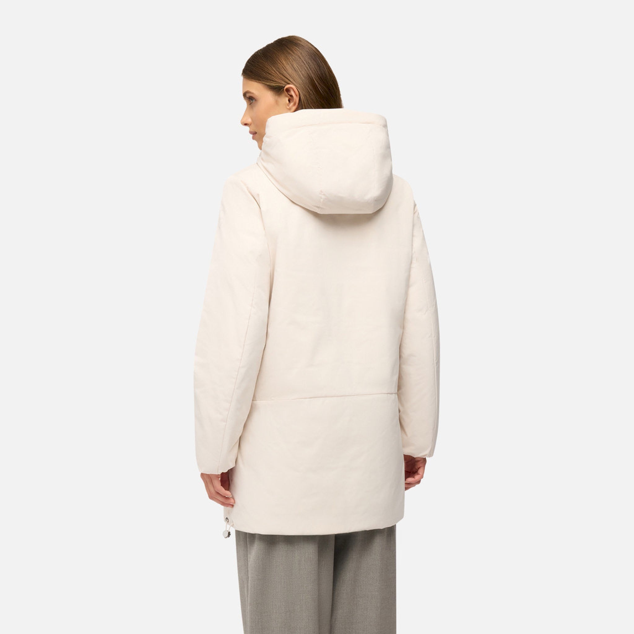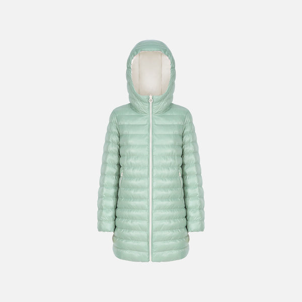 Parka donna reversibile, realizzato in taffeta di poliestere con interno trapuntato in nylon, garantisce protezione idrorepellente e resistenza al vento, traspirante e confortevole.