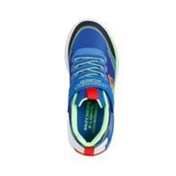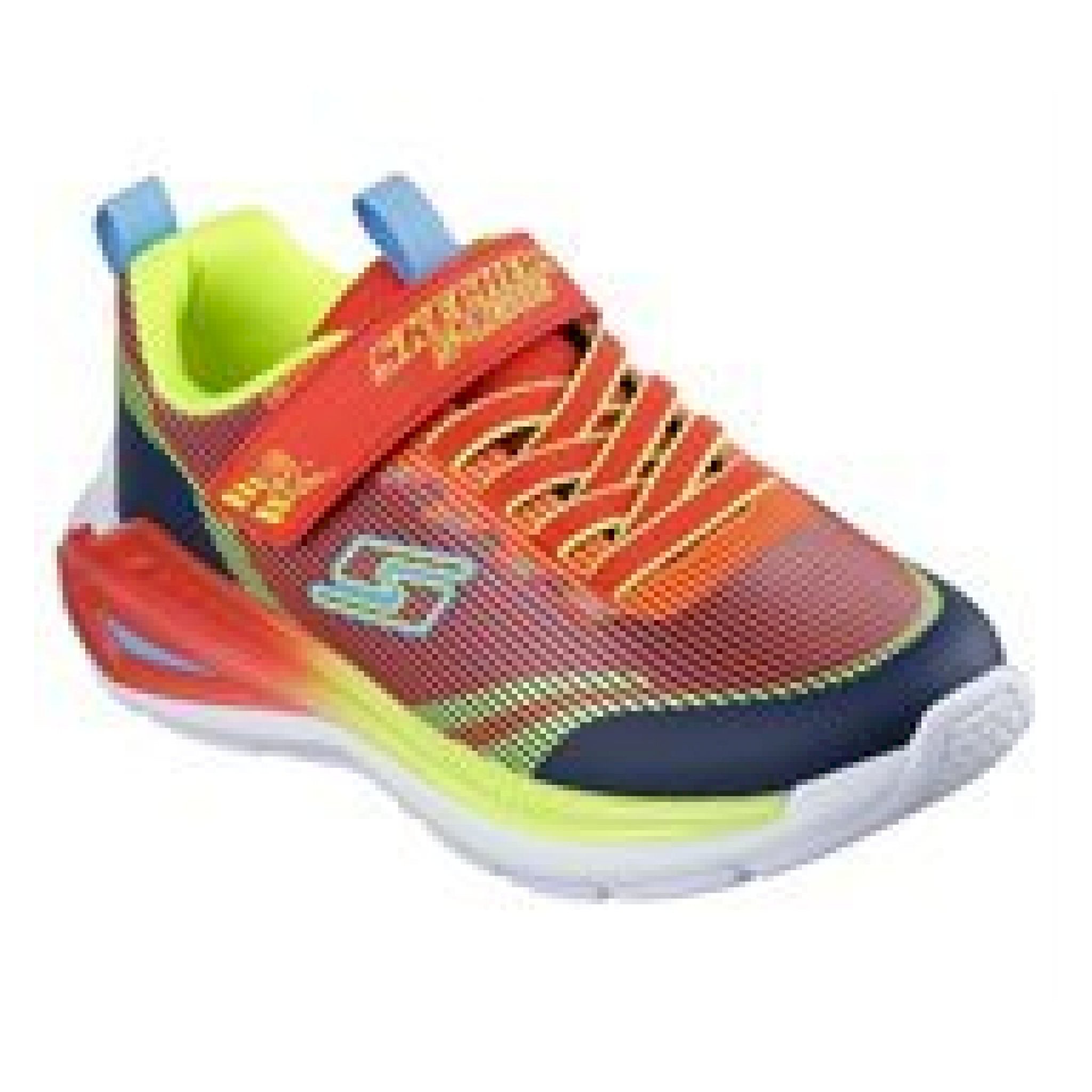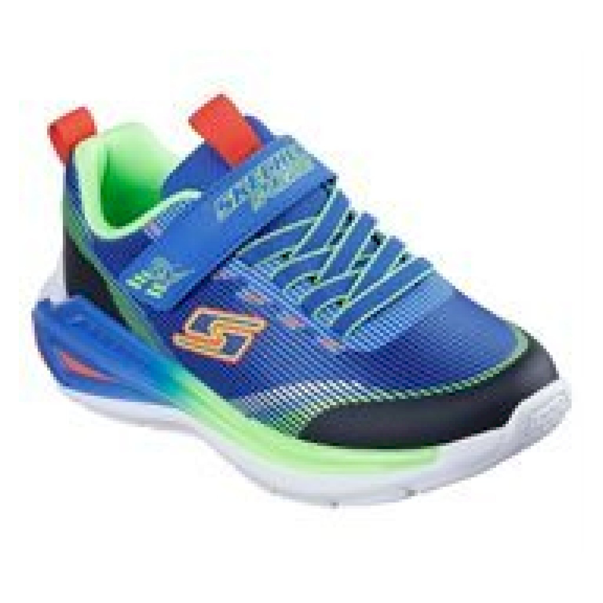Illumina il parco giochi con un divertimento sgargiante con skechers s-lights®: tri-namics 2.0. questo modello skechers con chiusura adattiva presenta una tomaia leggera in mesh e materiale sintetico con stampa tattile, lacci elastici, cinturino regolabile sul collo del piede e un'intersuola geometrica luminosa.