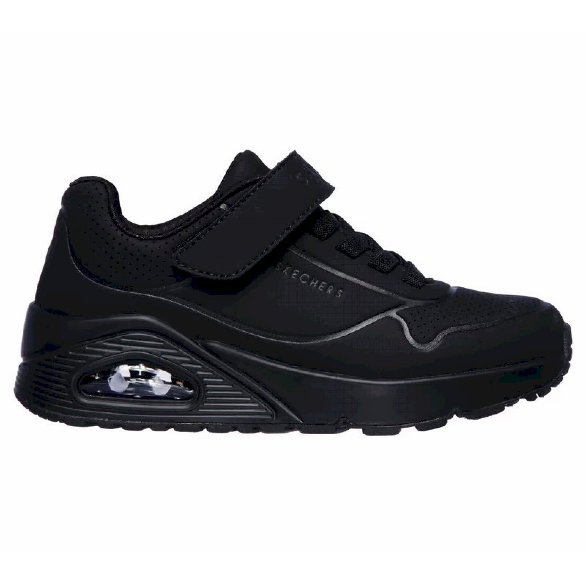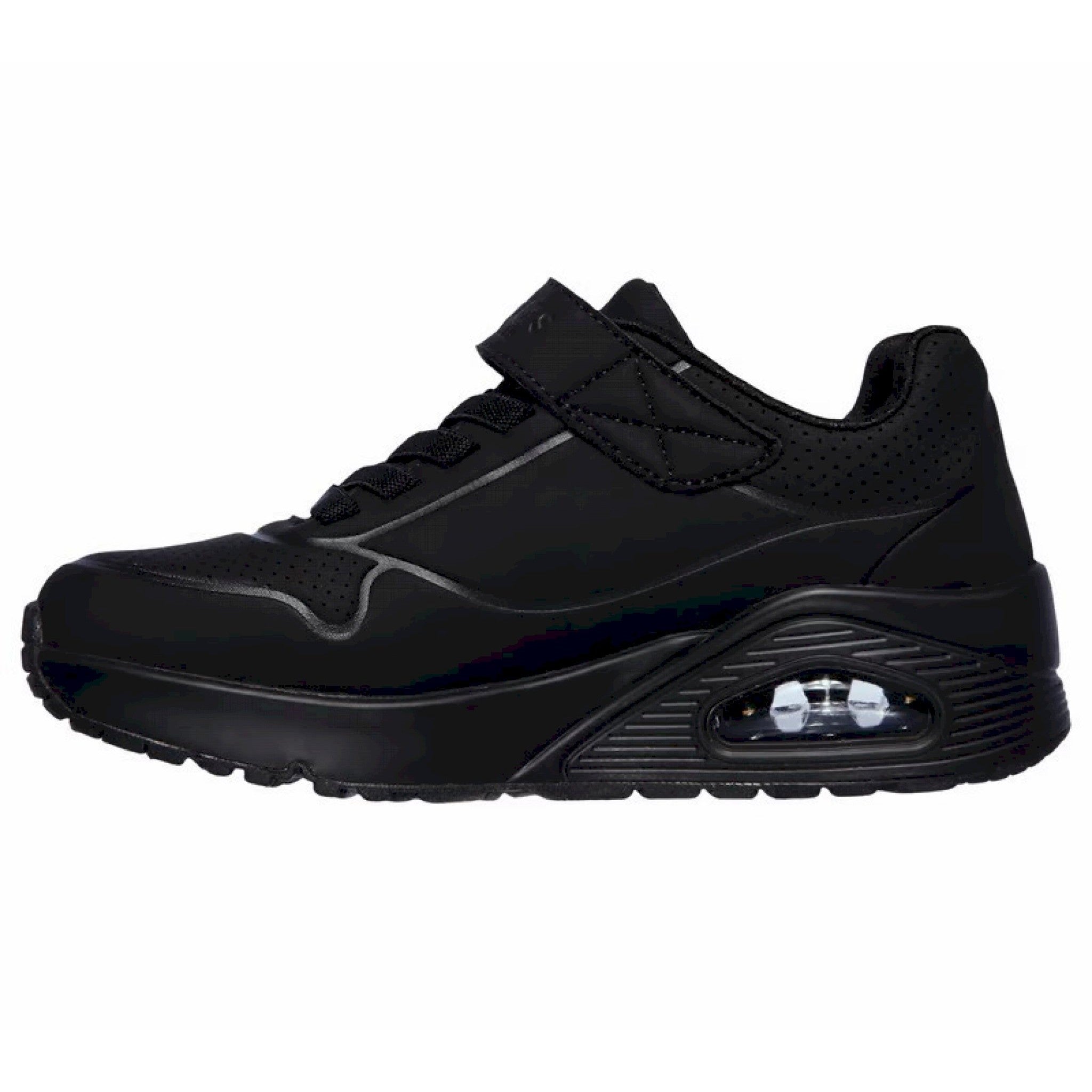 Lo stile classico con ammortizzazione ad aria incontra il comfort moderno nelle sneaker skecher street uno - stand on air. tomaia in materiale tecnico liscio effetto pelle in una sneaker di tendenza con design classico allacciata, impunture e dettagli traforati. soletta air cooled memory foam, intersuola con ammortizzazione ad aria a vista.