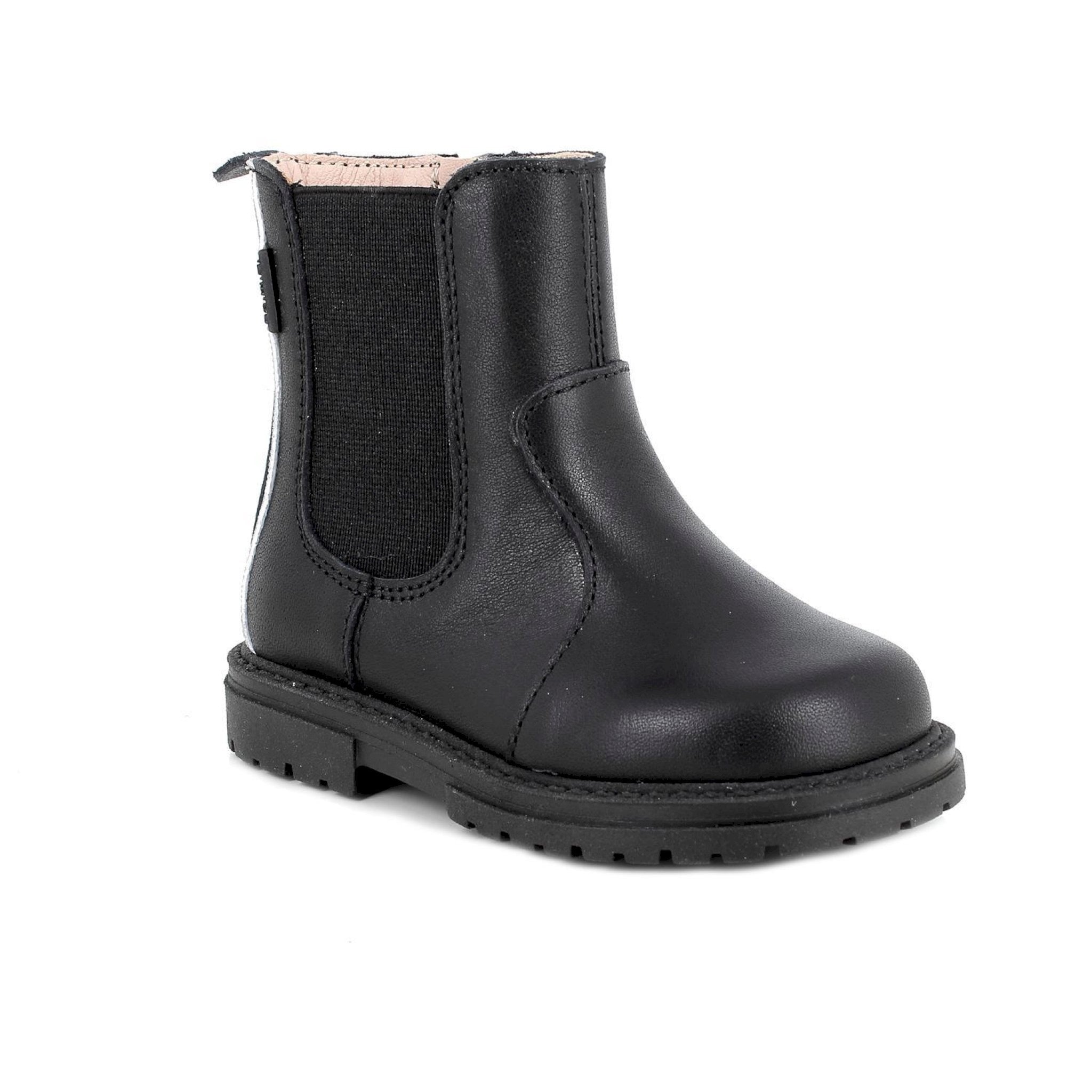 Questi chelsea boots neri sono un concentrato di stile urbano e praticità pensati per piccole protagoniste dal passo deciso. la suola robusta in gomma offre grip e stabilità su ogni superficie, rendendoli ideali per le giornate più attive. perfetti per completare sia outfit casual che più eleganti, hanno una pratica zip interna che aiuta la calzata. il sottopiede estraibile in pelle può essere estratto e lasciato asciugare all'aria per una maggiore igiene.