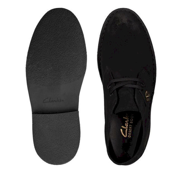 Il desert boot, lanciato nel 1950, è un modello spesso imitato ma mai migliorato. la sua iconica tomaia dalle linee pulite in pelle scamosciata nera è rifinita da una semplice chiusura stringata e poggia sulla caratteristica suola in resistente gomma riciclata effetto para. all'interno, il sottopiede ortholite ammortizza ogni passo.