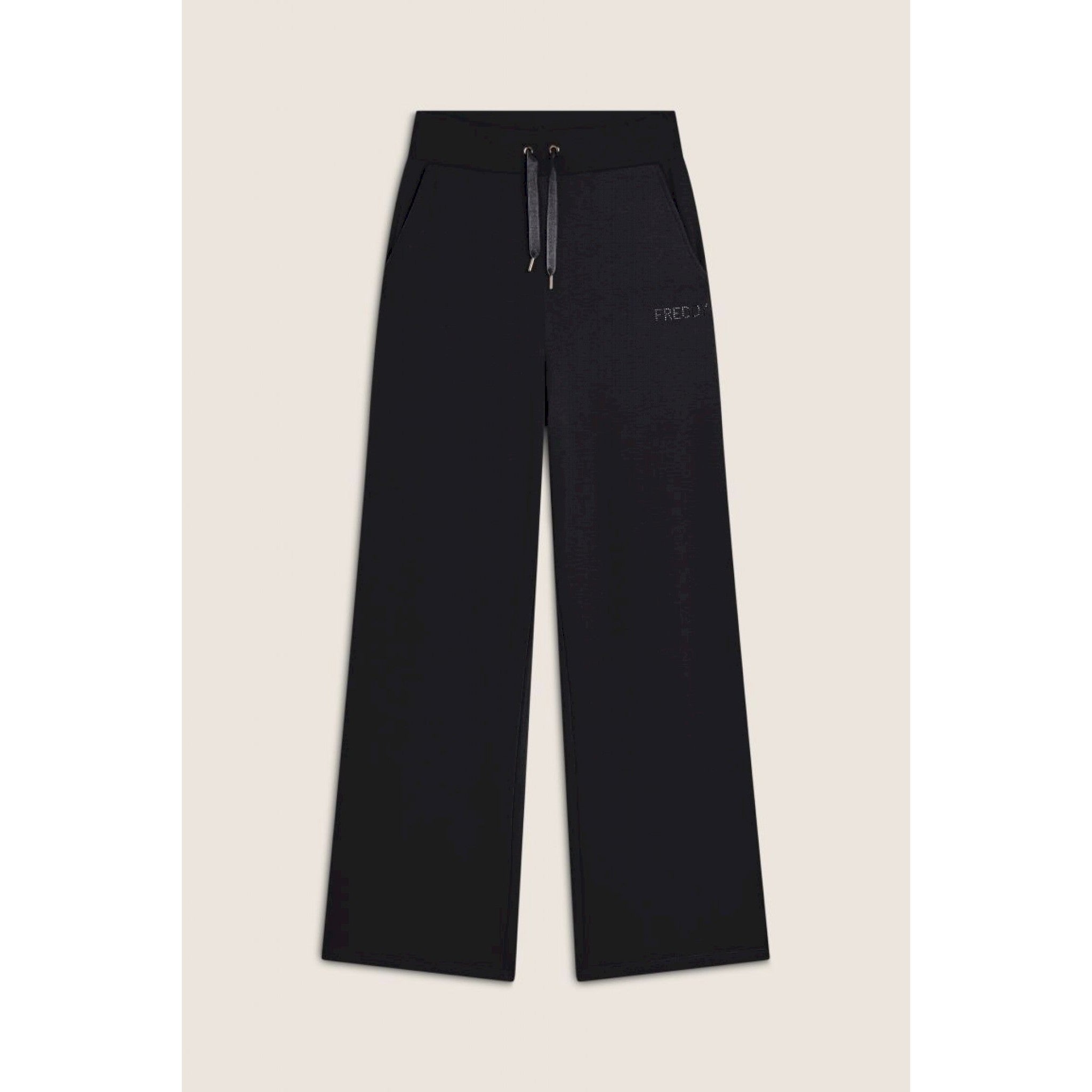Felpa di viscosa elasticizzata, rinomata per il suo tocco morbido, flessibile e lucente. il piccolo logo freddy in strass sul fianco sinistro dona un tocco raffinato, mentre le tasche alla francese e la vita regular in costina con coulisse assicurano praticità. la gamba dritta ampia completa questo capo versatile, ideale per un look elegante e rilassato.