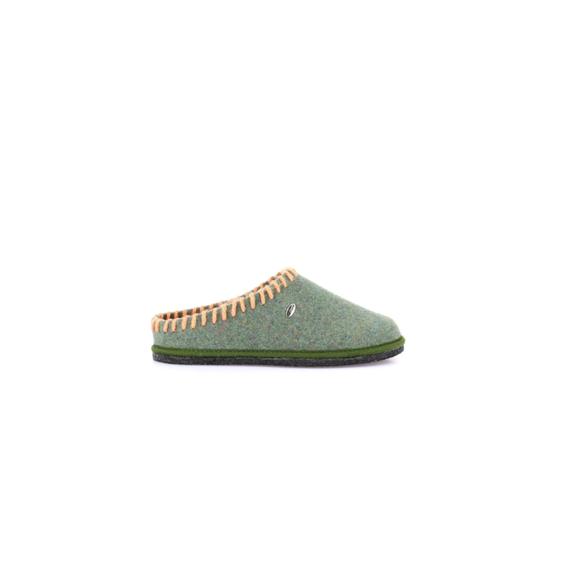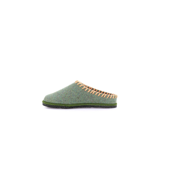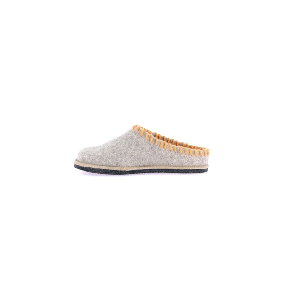 Tomaia in feltro di vera lana e fondo in feltro antigraffio, immancabile per chi ha una pavimentazione di casa in legno. questa ciabatta è calda, traspirante e naturalmente made in grünland!