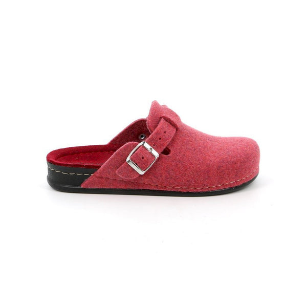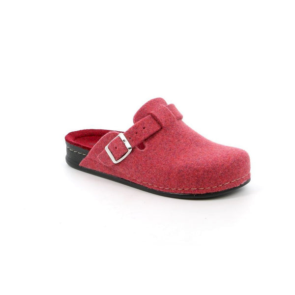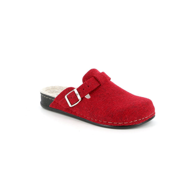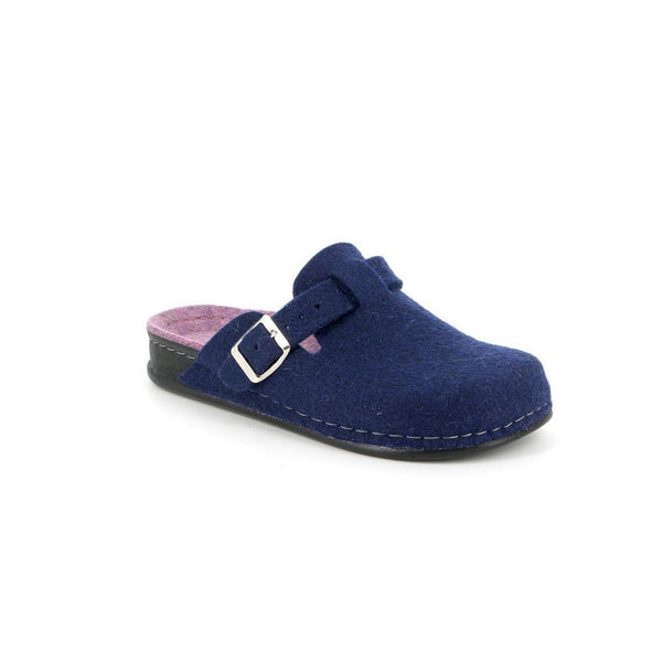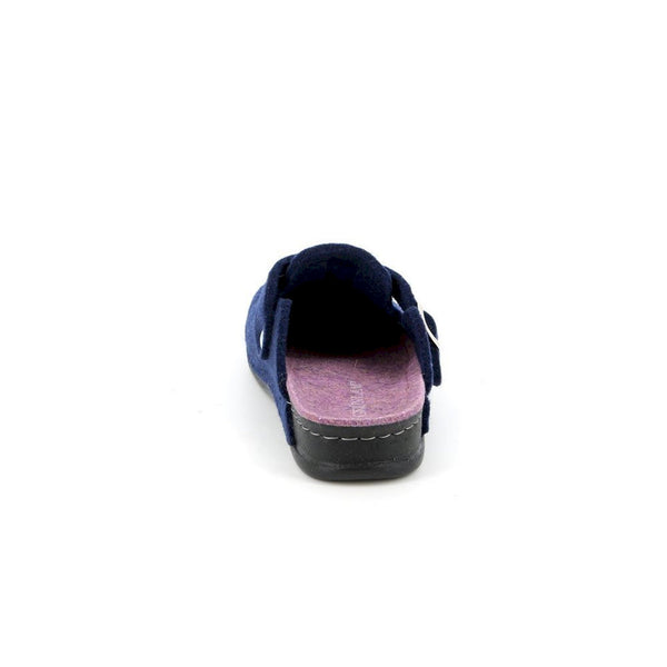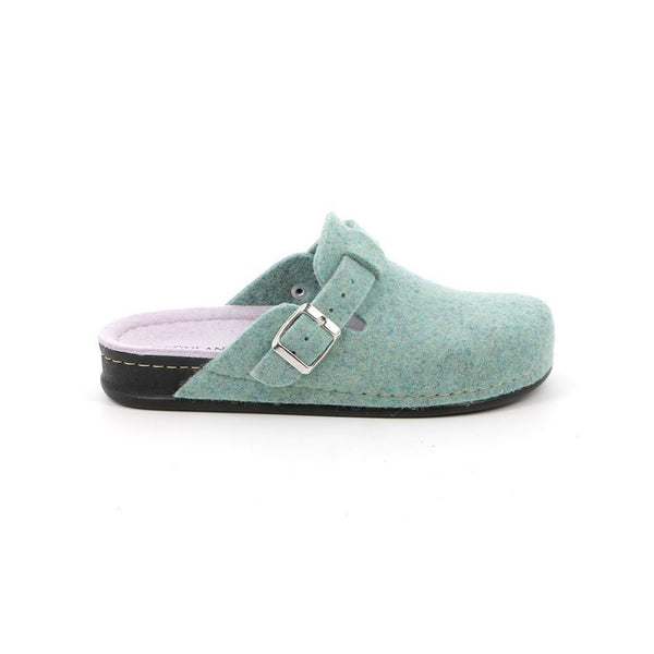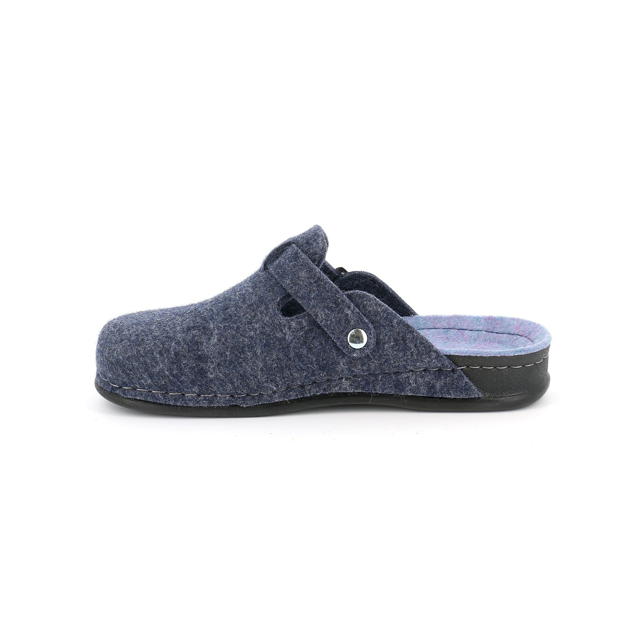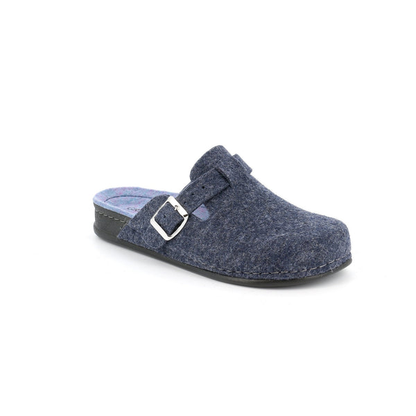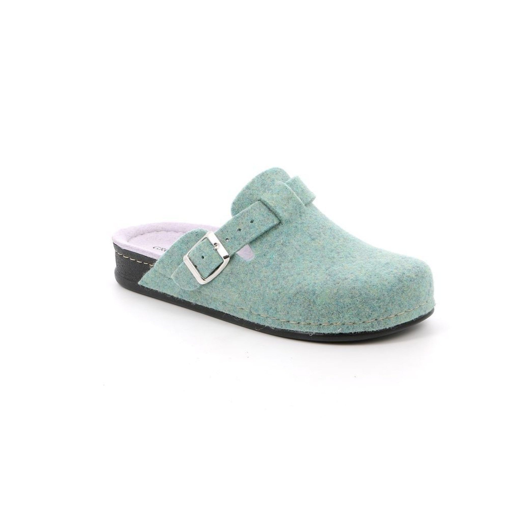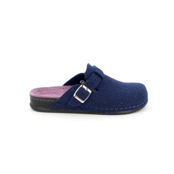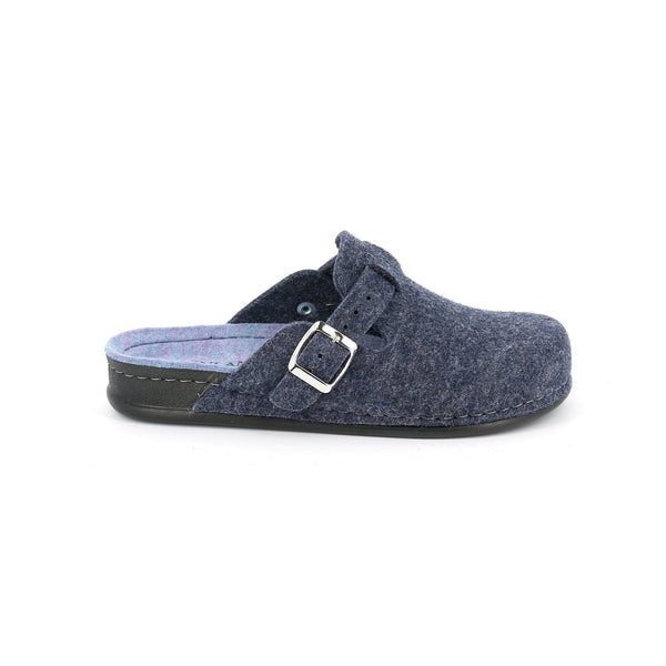 Ciabatta con fibbia metal free dall'inconfondibile stile grünland, si caratterizza per essere calda, leggera e traspirante grazie alla tomaia in feltro di vera lana.