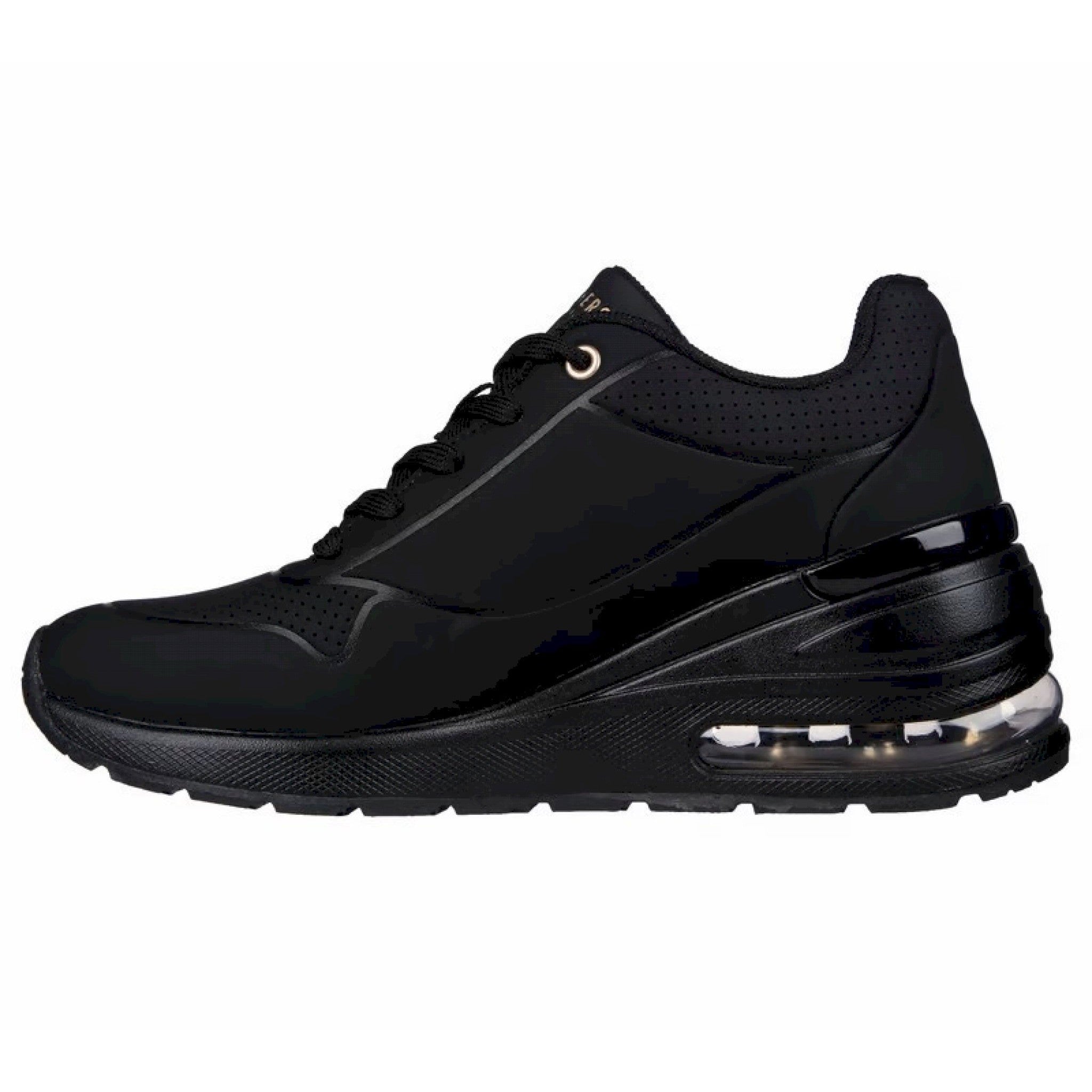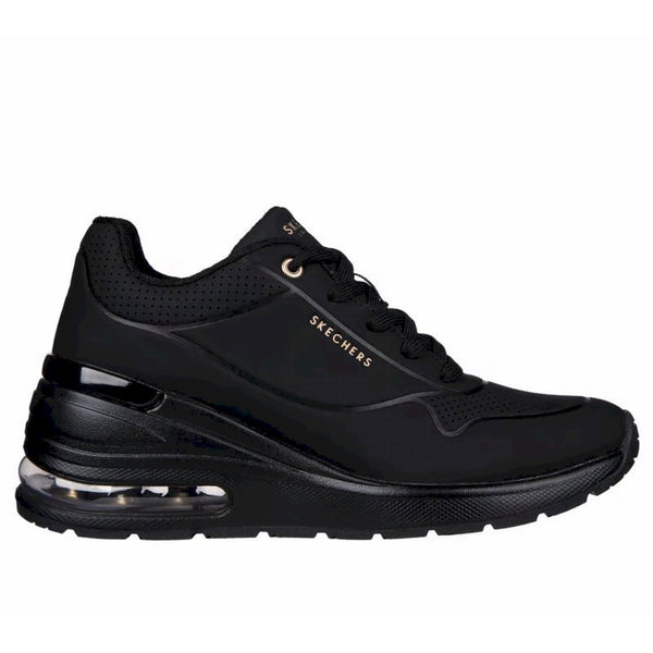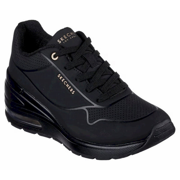 Migliora il tuo stile con il comfort leggerissimo di skechers street™ million air - elevated air. questa sneaker allacciata di tendenza con zeppa presenta una tomaia in materiale tecnico durabuck con soletta skechers air cooled memory foam® e intersuola con tecnologia visibile skech-air®.