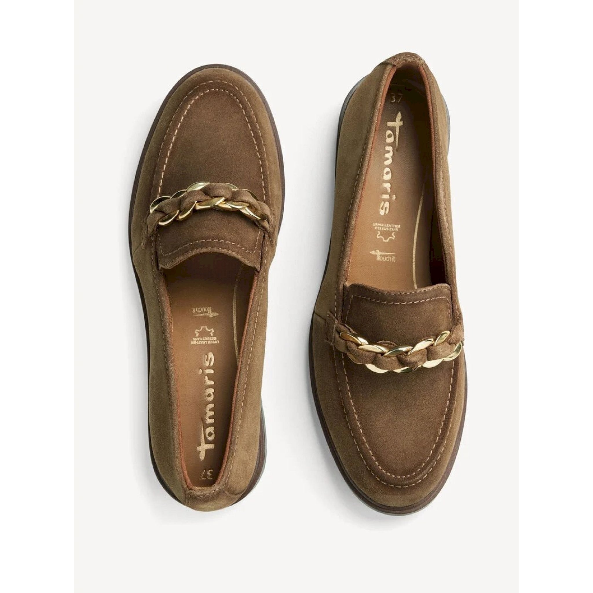 Scopri come il tuo passo quotidiano può unirsi a stile e comfort con questi slipper tamaris dal carattere urban chic. la suola piatta e il morbido memory foam touchit coccolano il piede mentre la catena decorativa aggiunge personalità a ogni tuo outfit. perfetti per l’ufficio, le passeggiate d’autunno o un look casual elegante che esalta la tua unicità. vivi ogni momento con eleganza rilassata e comodità su misura.