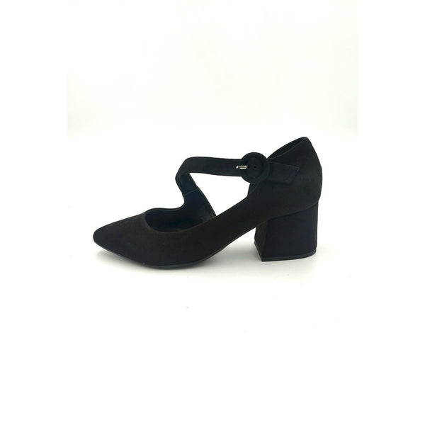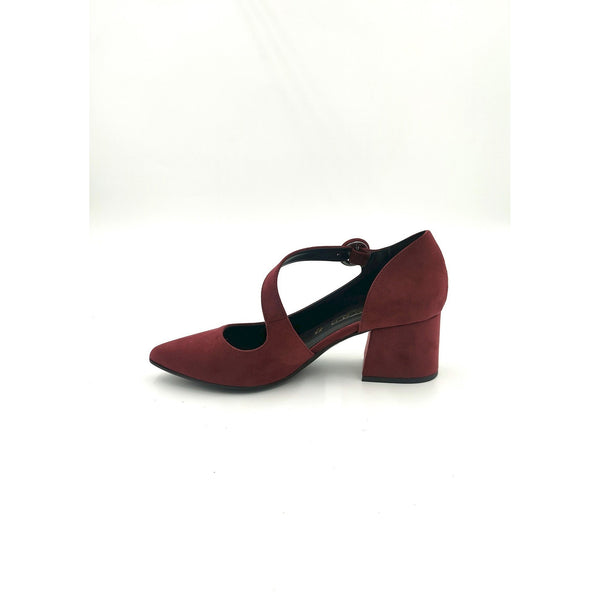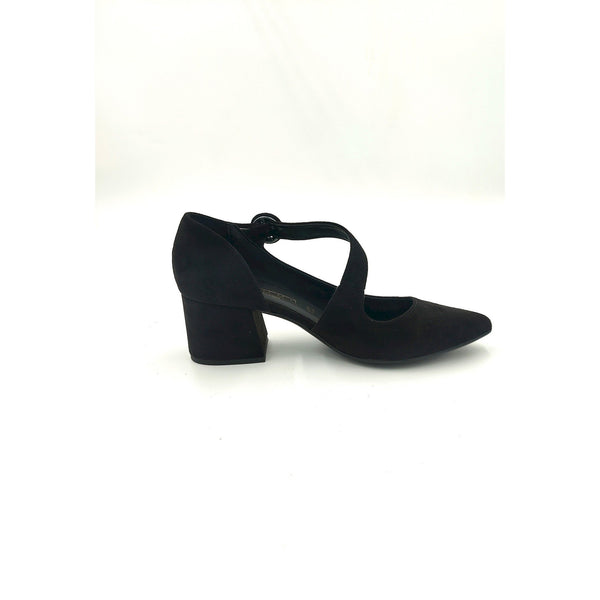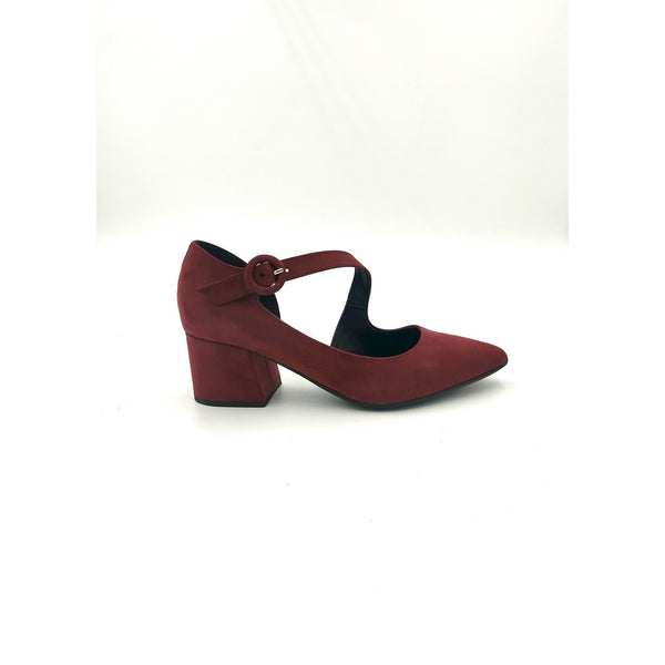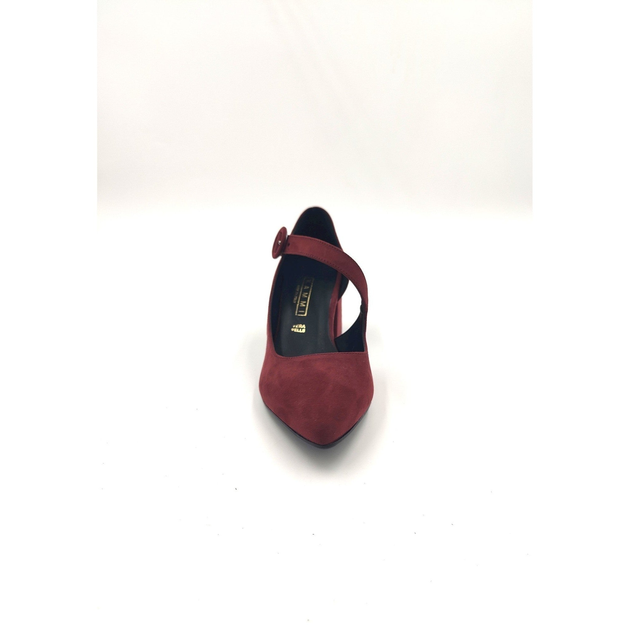 Scarpa con tacco largo, con conturino ad incrocio e fibbia rivestita, soletta interna in pelle, tacco 6 cm