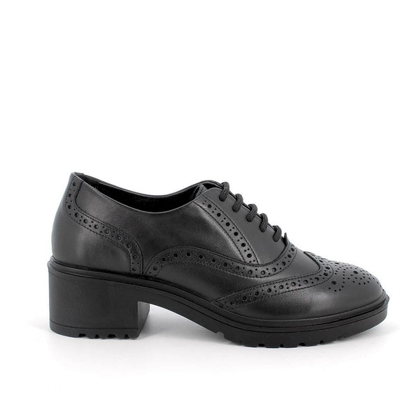 Francesina stringata con tacco, in pelle. la fodera in pelle e il sottopiede estraibile in pelle assicura massimo confort ed igiene.