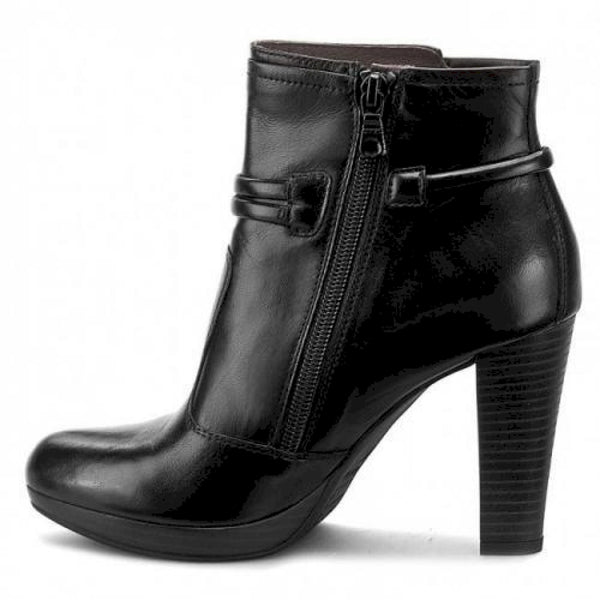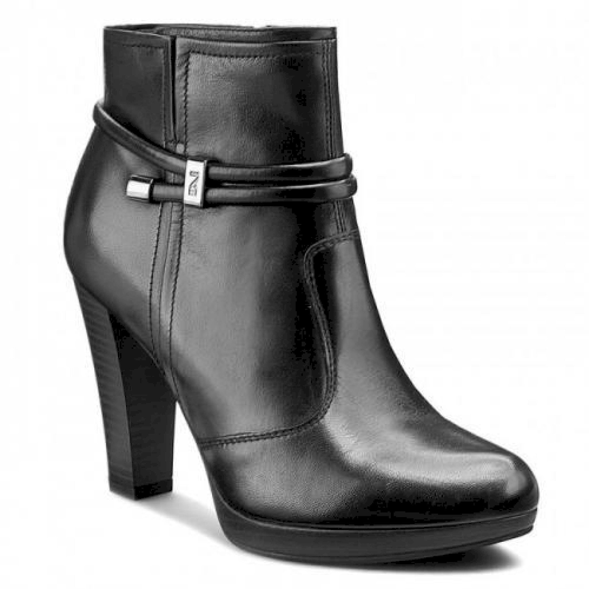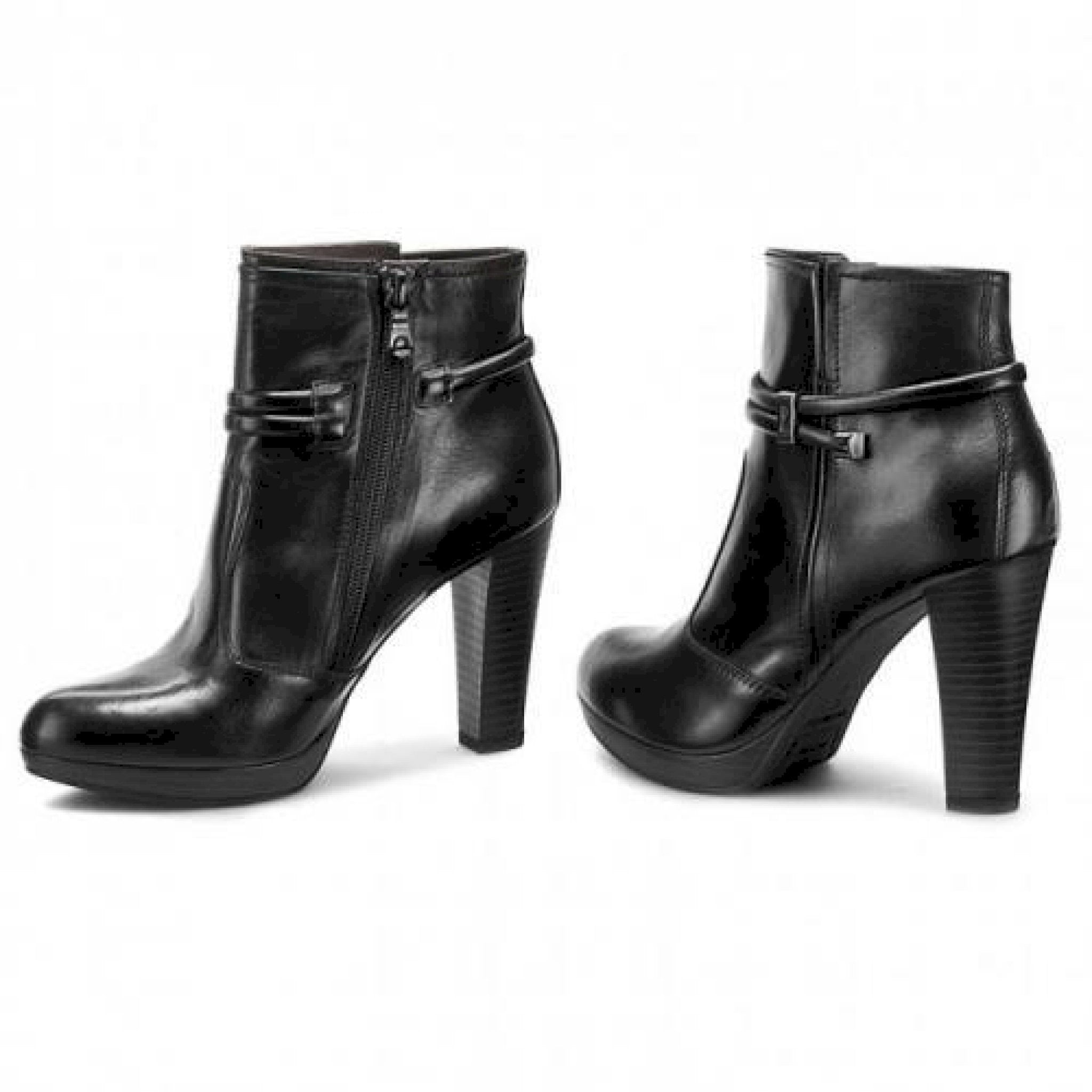 Tronchetti per donna nero giardini realizzati in pelle nera con fibbia estetica e chiusura lampo interna funzionale. fodera in pelle marrone, sottopiede in pelle marrone, fondo in gomma nero con tacco 9cm e plateau interno 1,5cm. scarpe nero giardini modello a615955d caracas nero. catalogo autunno inverno 2016 2017.