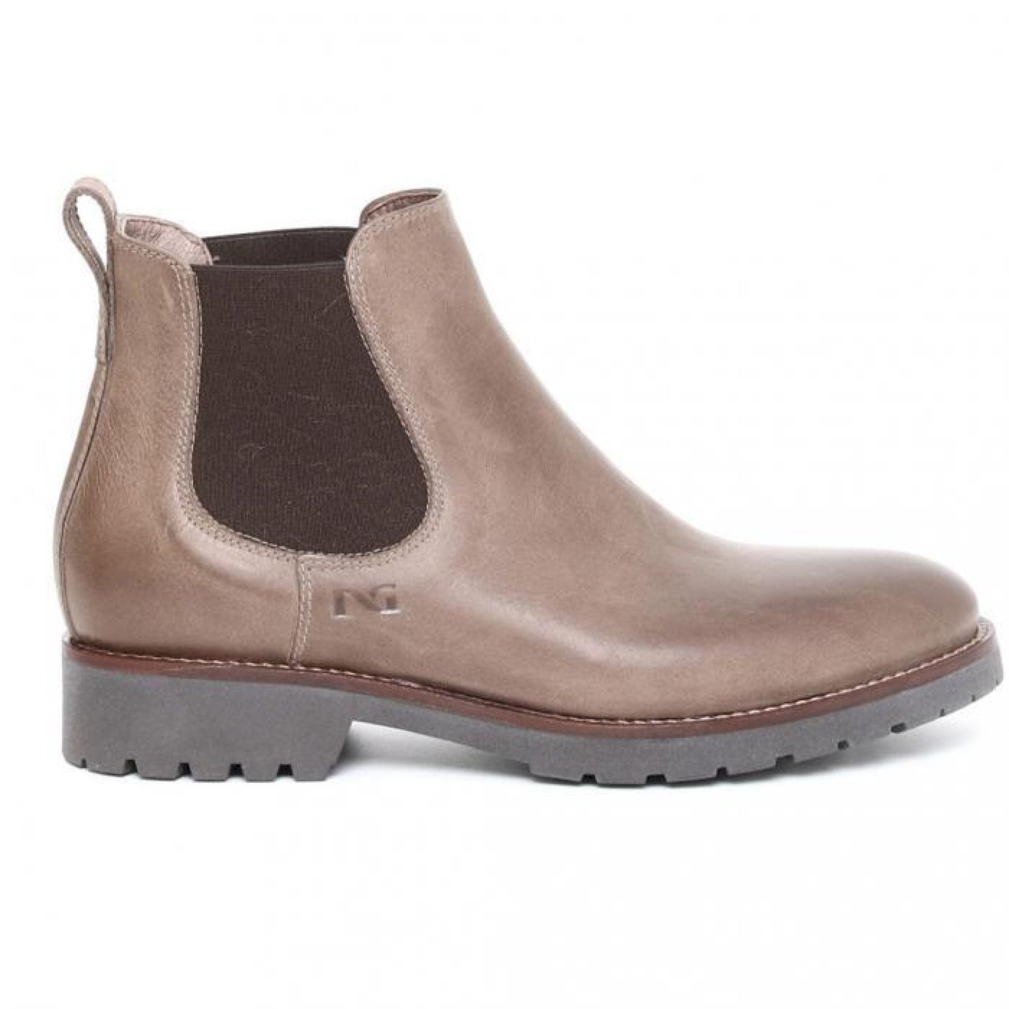Stivaletto modello beatles in morbida pelle liscia con elastici laterali e guardolo in cuoio cucito