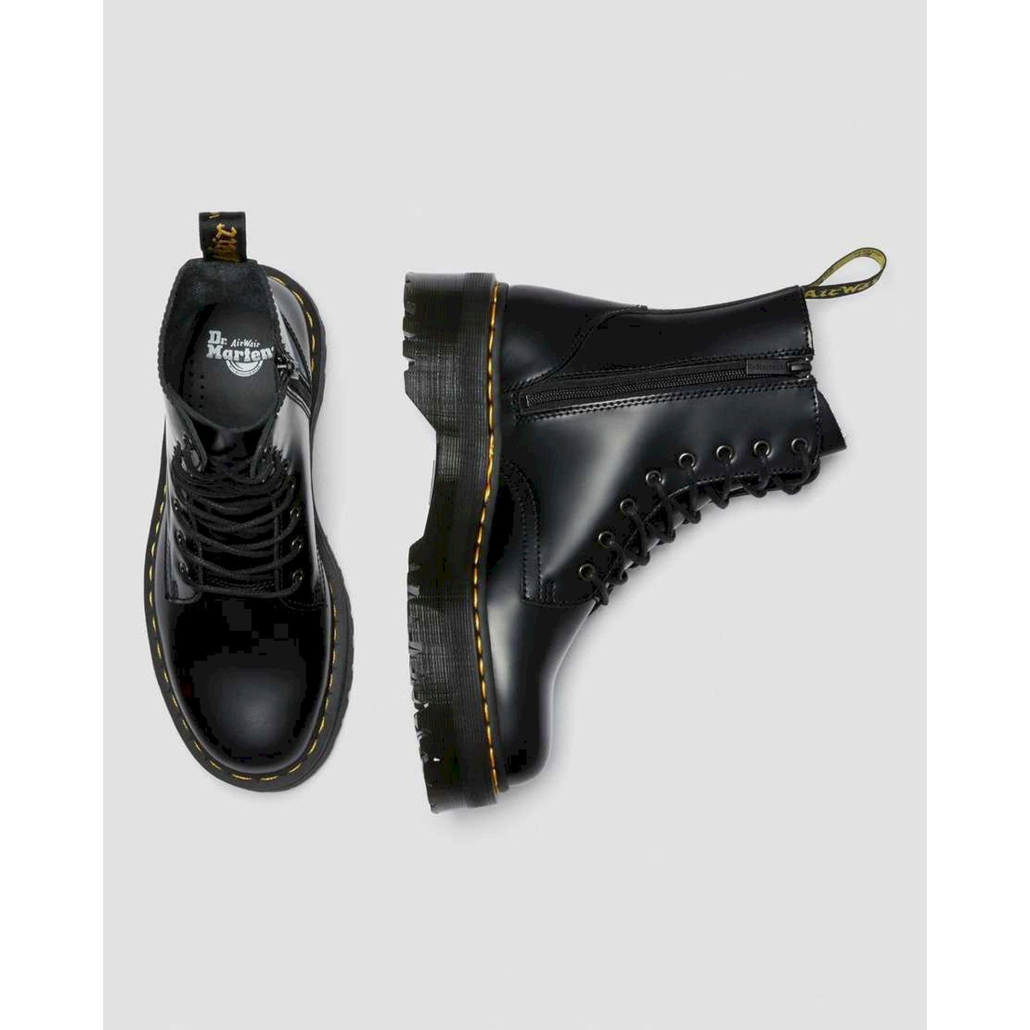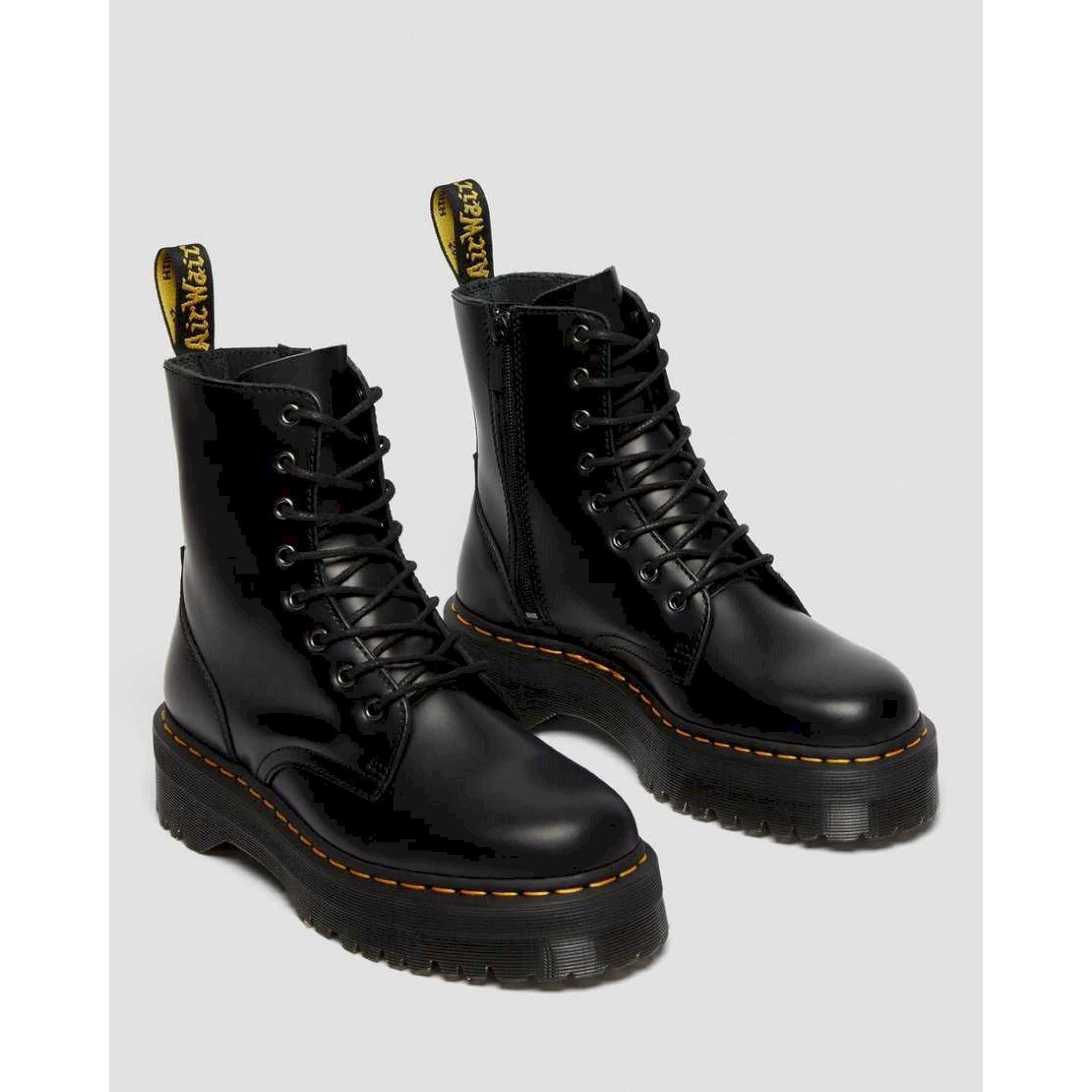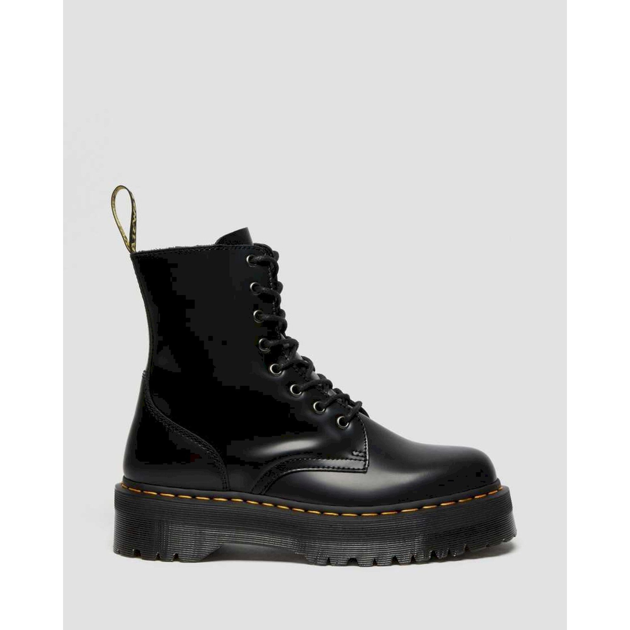 nella classica pelle polished smooth dr. martens, un materiale leggermente strutturato e molto durevole, dalla morbida lucentezza