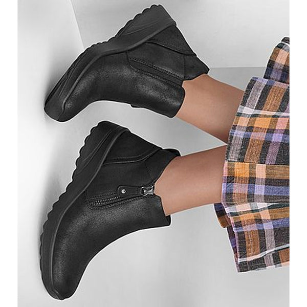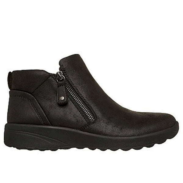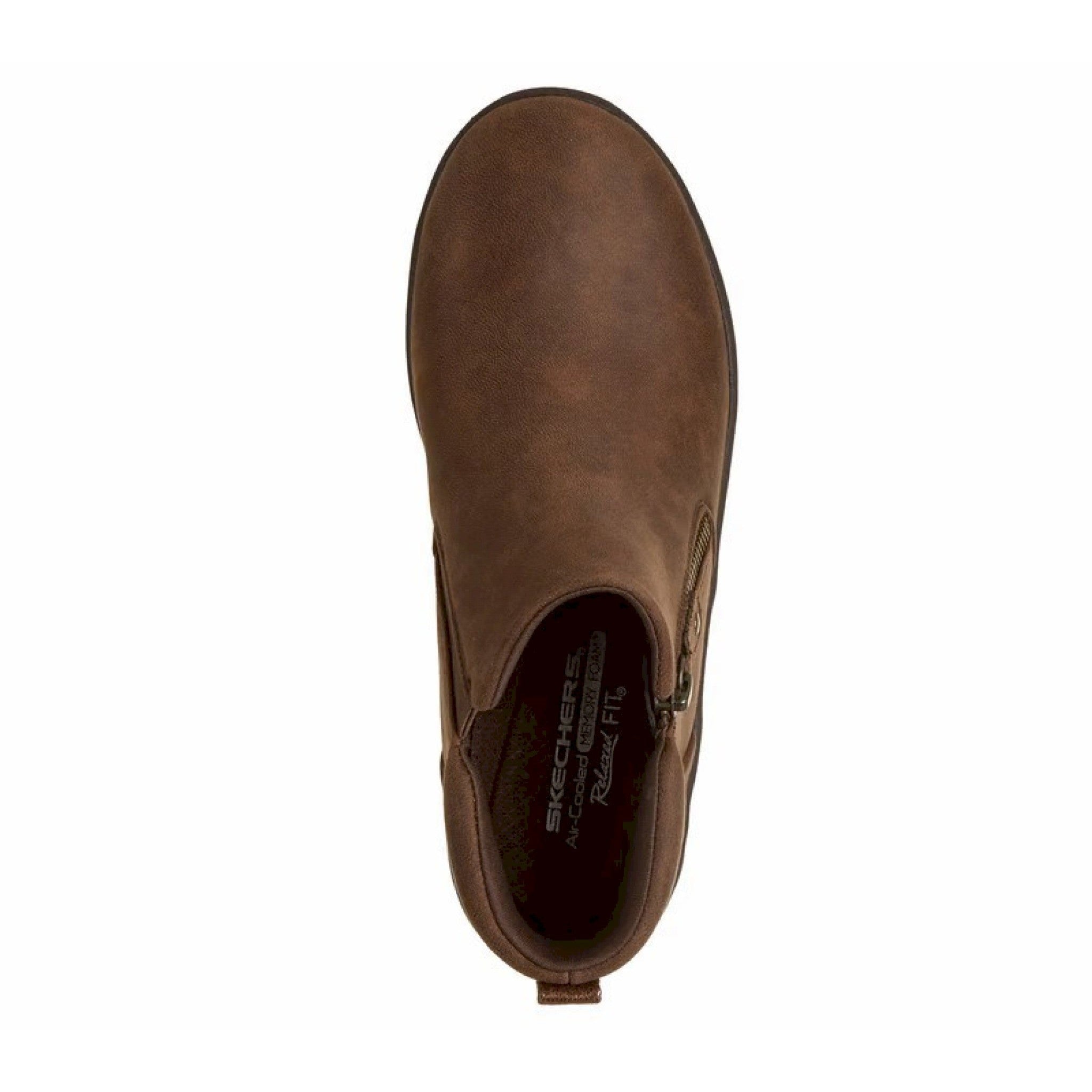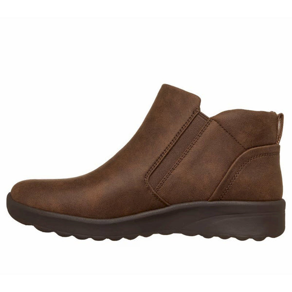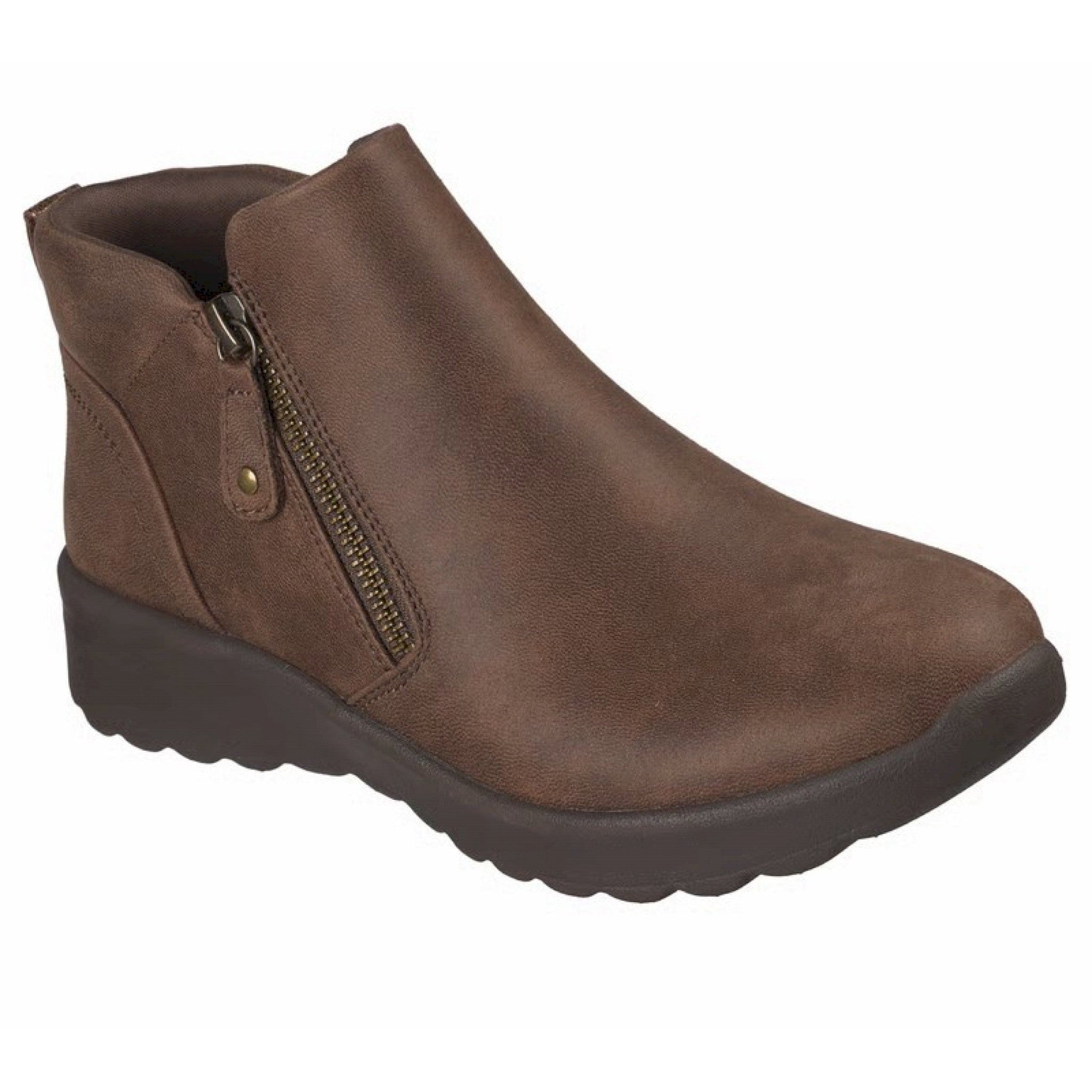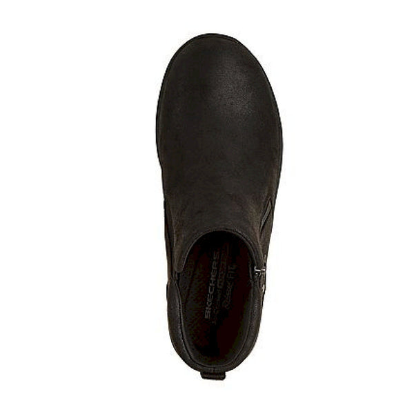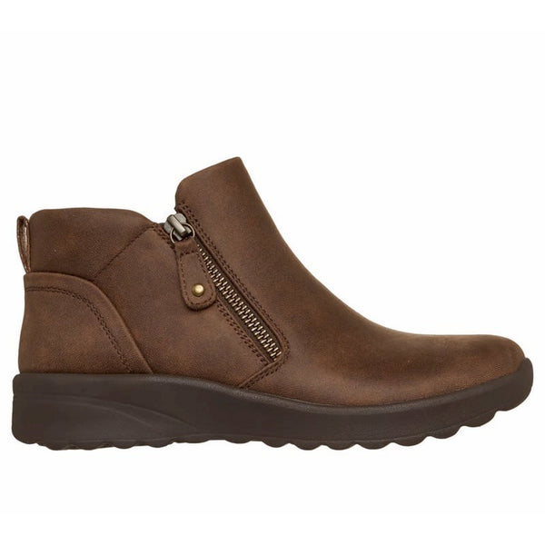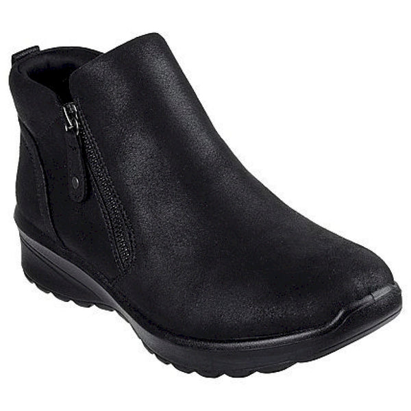 Scopri il comfort classico e lo stile elegante con le skechers lovely vibe - fall in bloom. questo scarponcino alla caviglia presenta una tomaia in pelle con cerniera laterale e una soletta skechers air-cooled memory foam™.