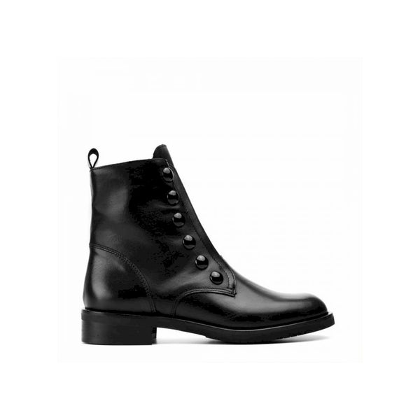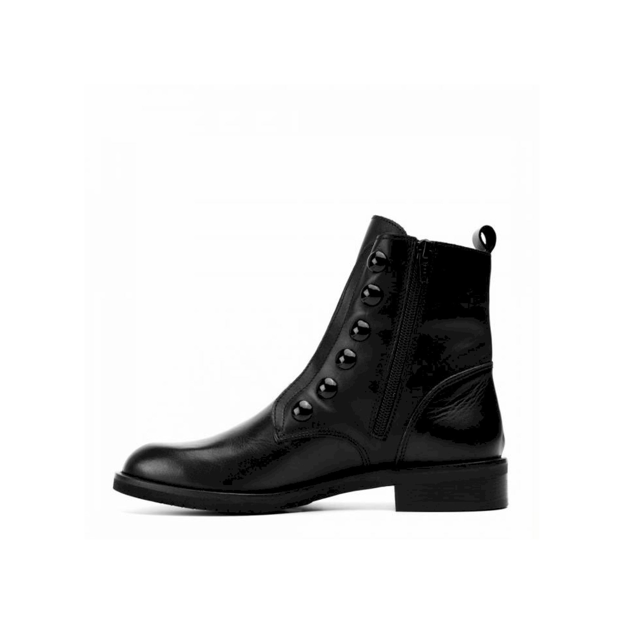 Stivaletto in pelle nera con cerniera laterale e borchie nere