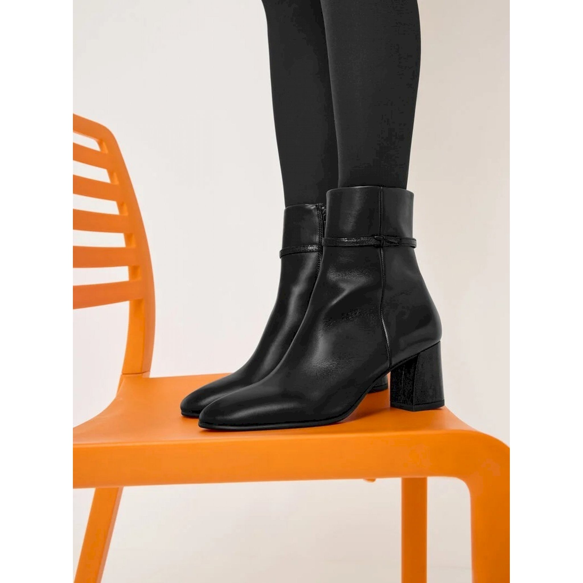 Stivaletto in pelle con cinturino