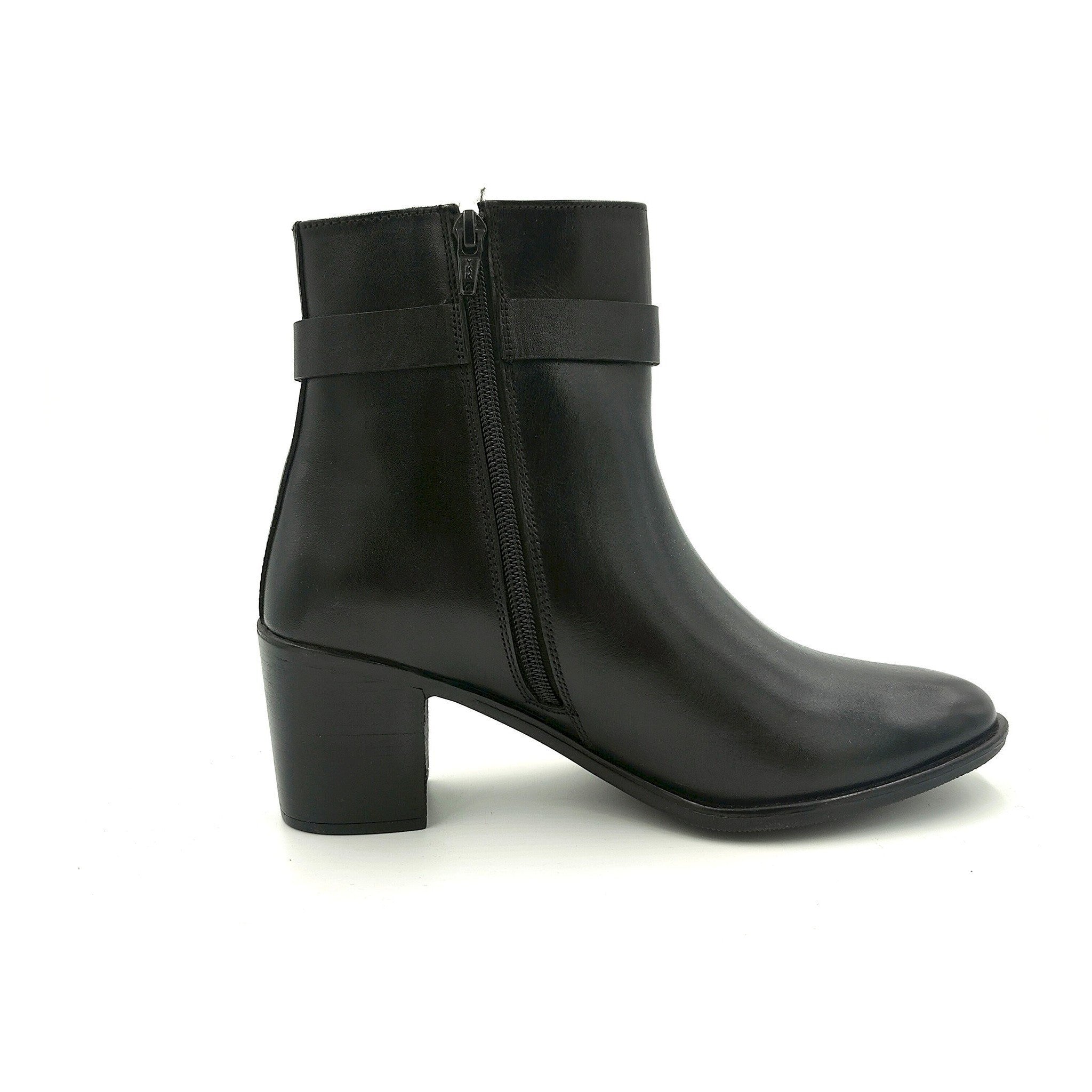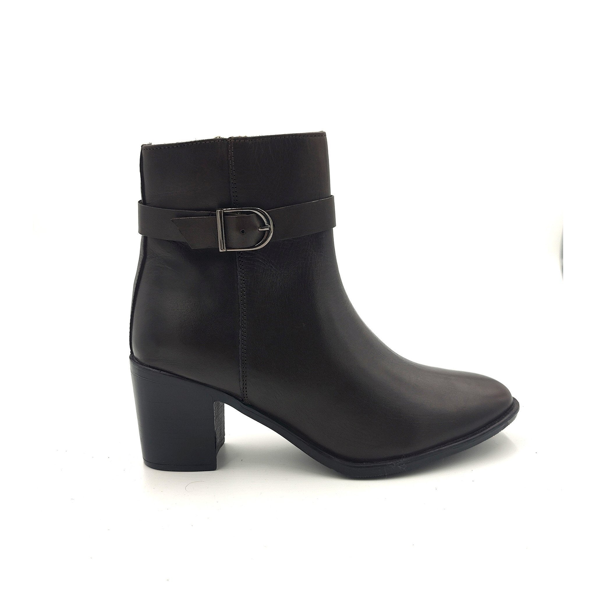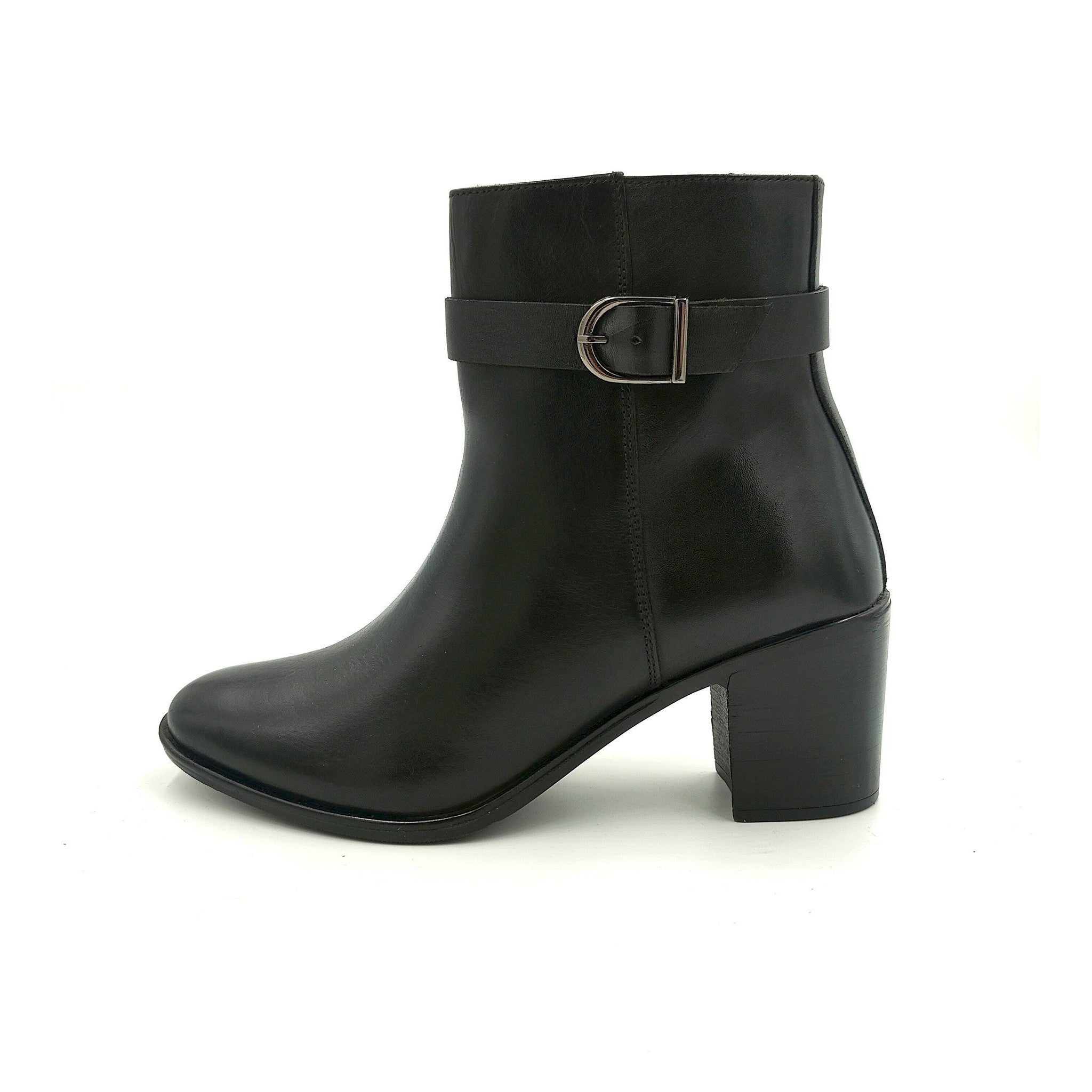 Stivaletto in pelle con tacco e fibbia con cerniera f.do gomma