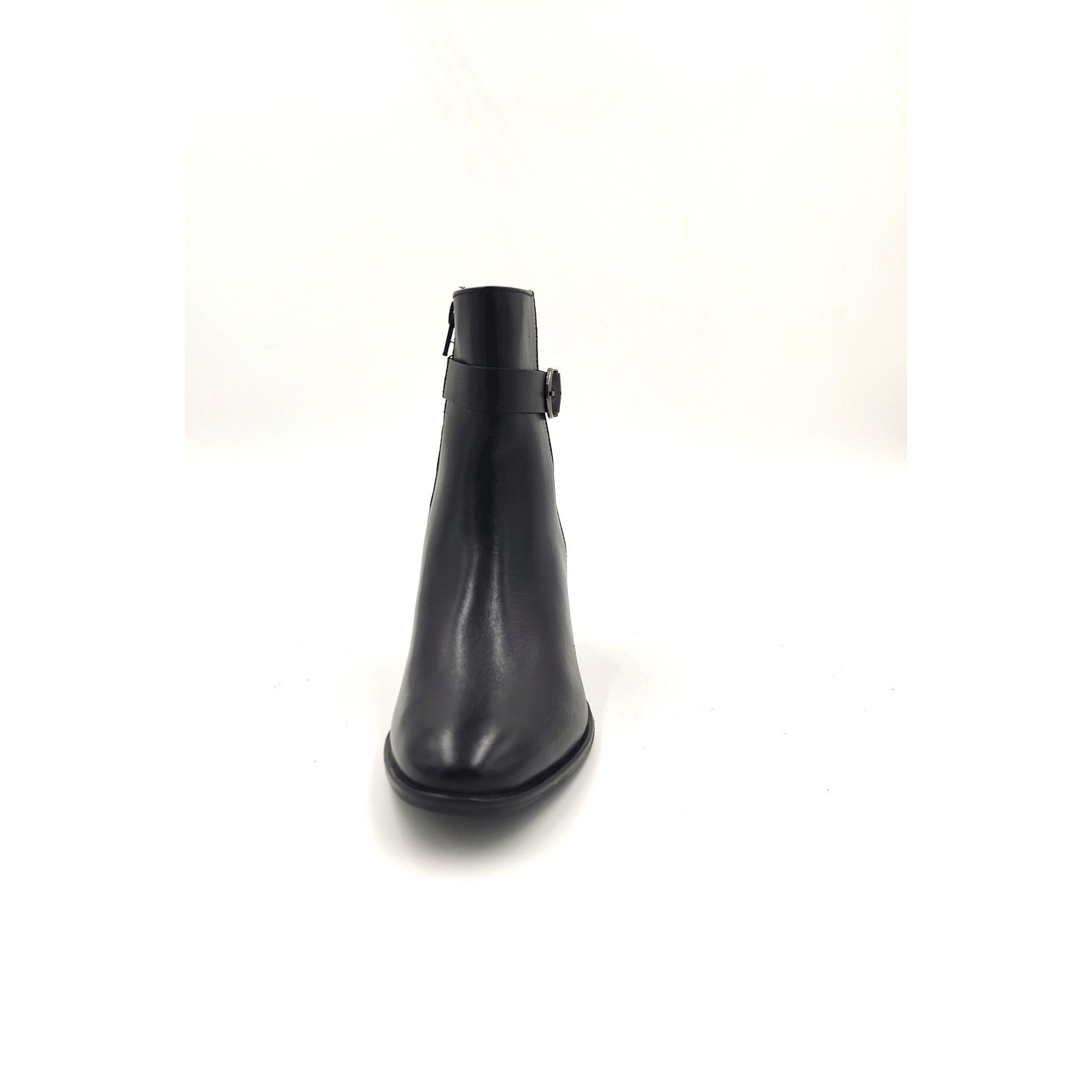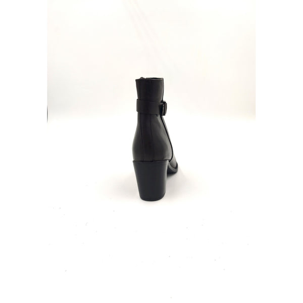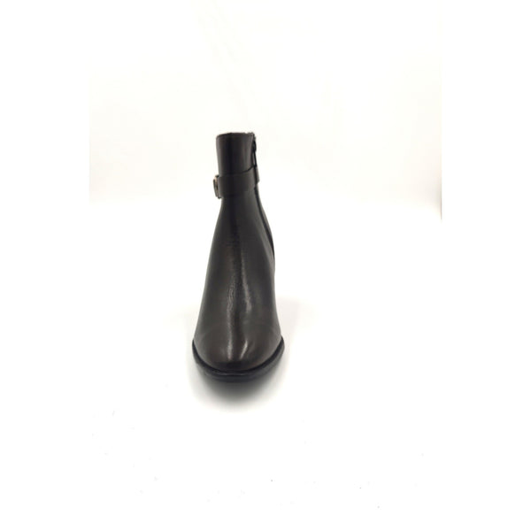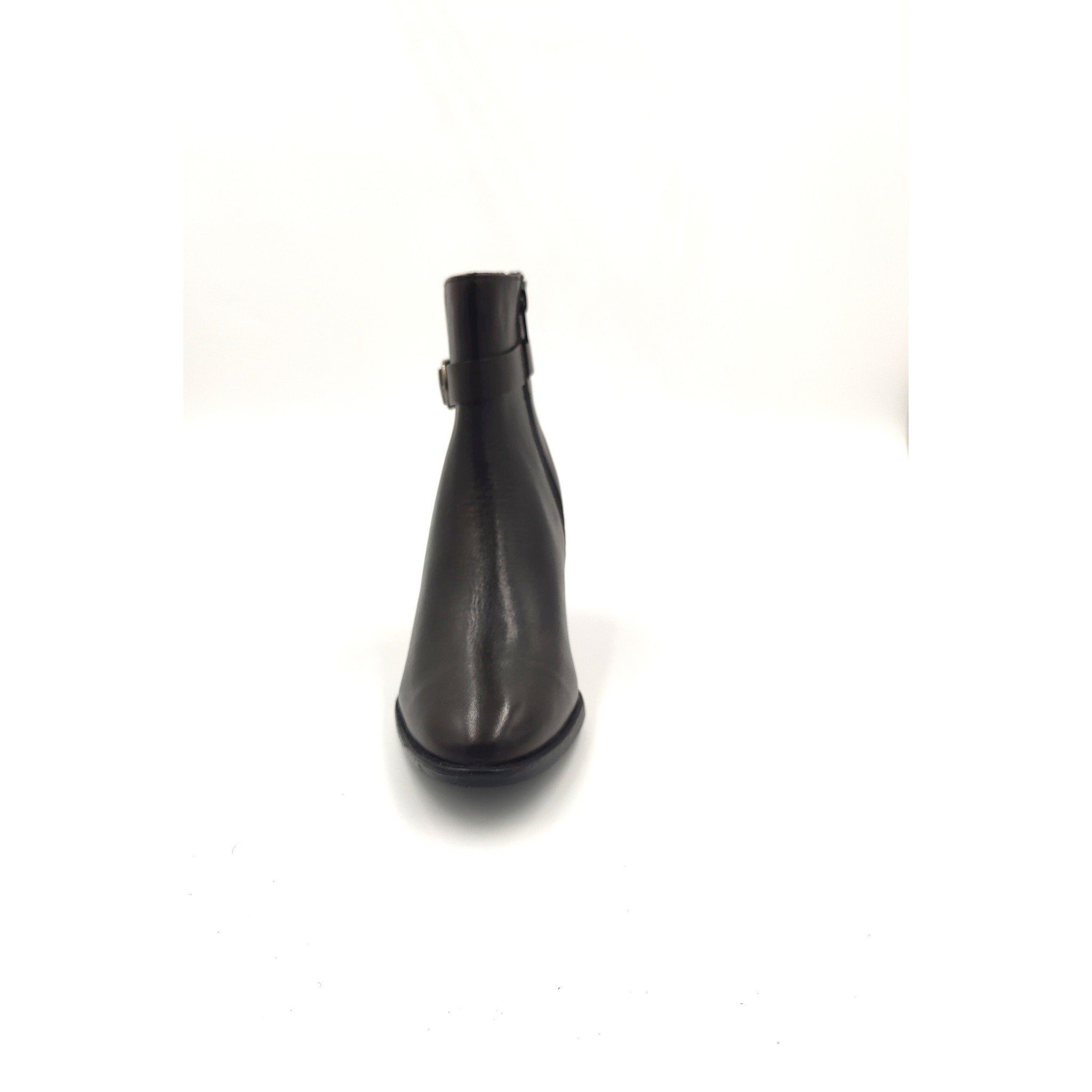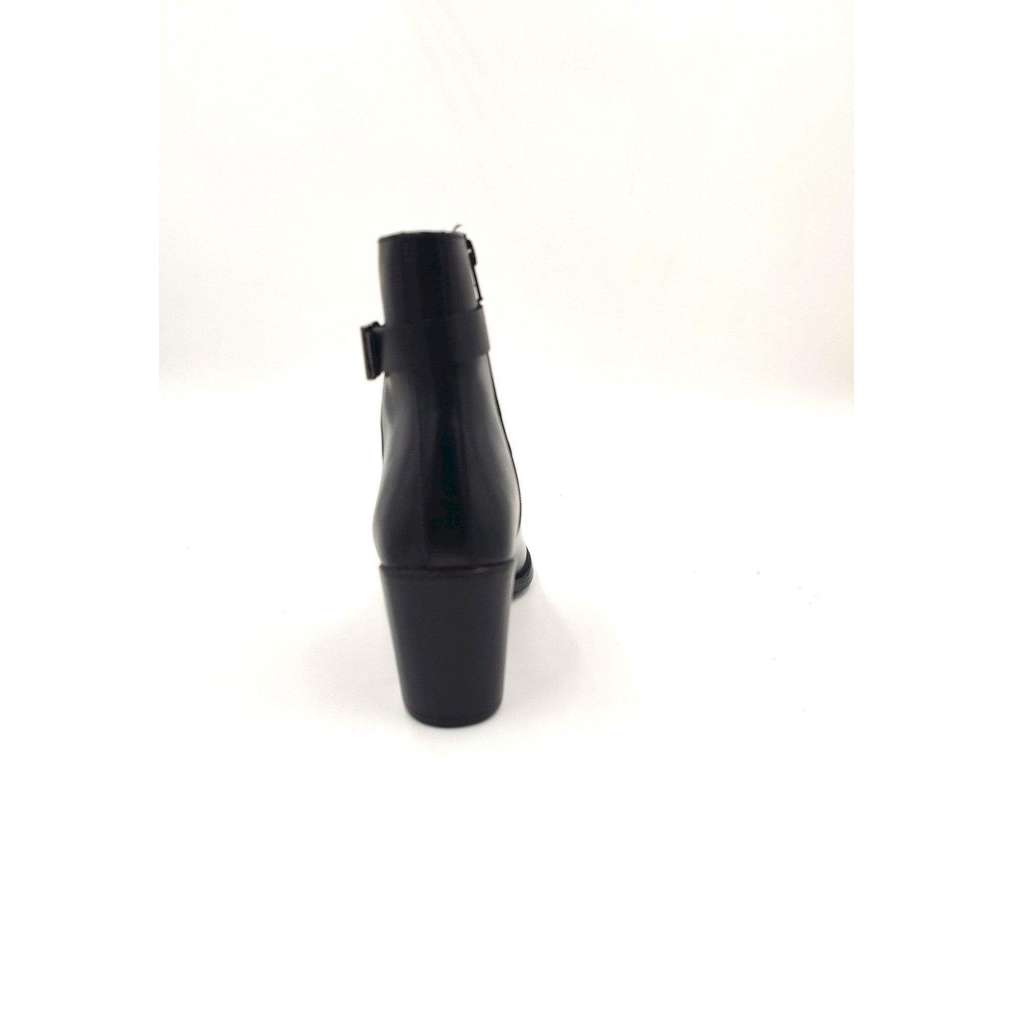 Stivaletto in pelle con tacco e fibbia con cerniera f.do gomma