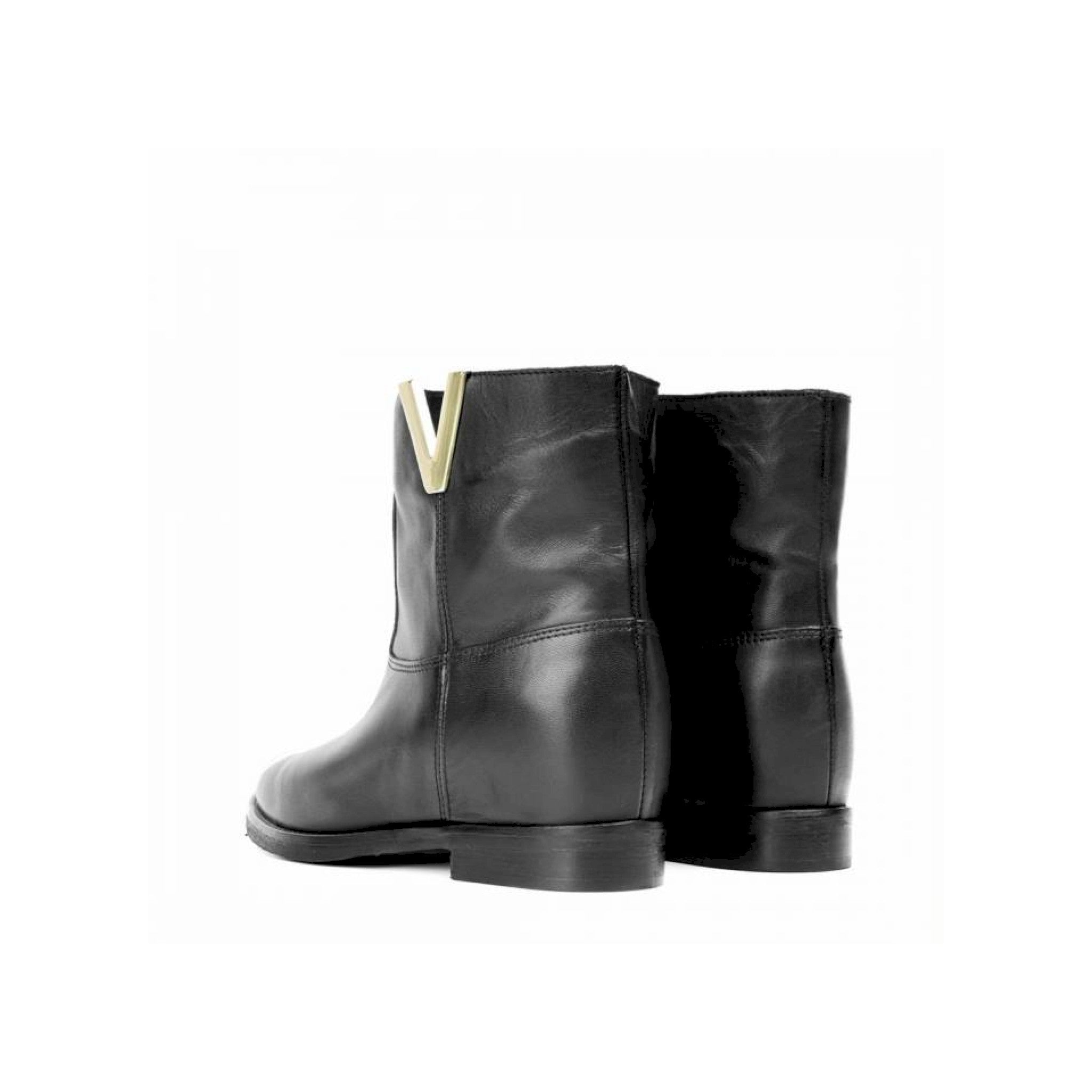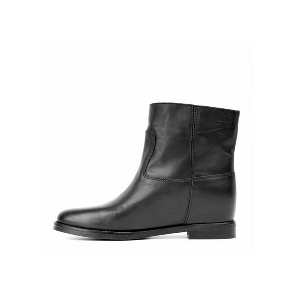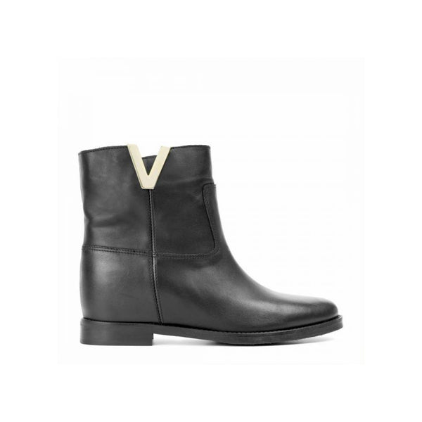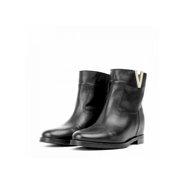 Stivaletto in pelle nera con apertura laterale a v color oro e zeppetta interna 4 cm