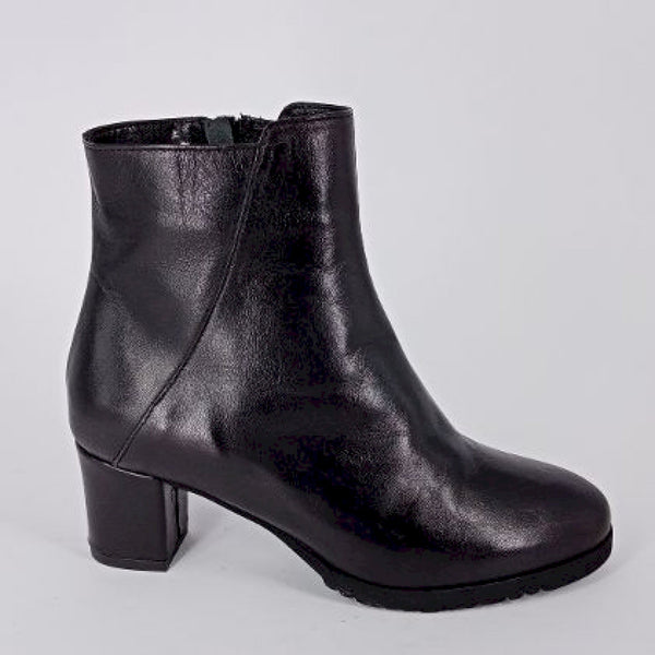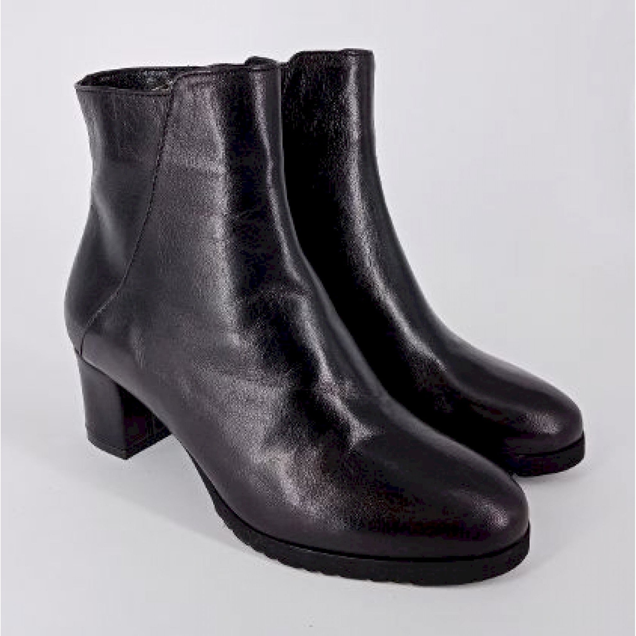Tronchetto in pelle nappata nera con zip all'interno . la fodera è in tessuto tecnico e caldo . sottopiede rivestito in pelle ed estraibile . tacco di cm. 6 foderato in pelle . suola in gomma con grip antiscivolo .