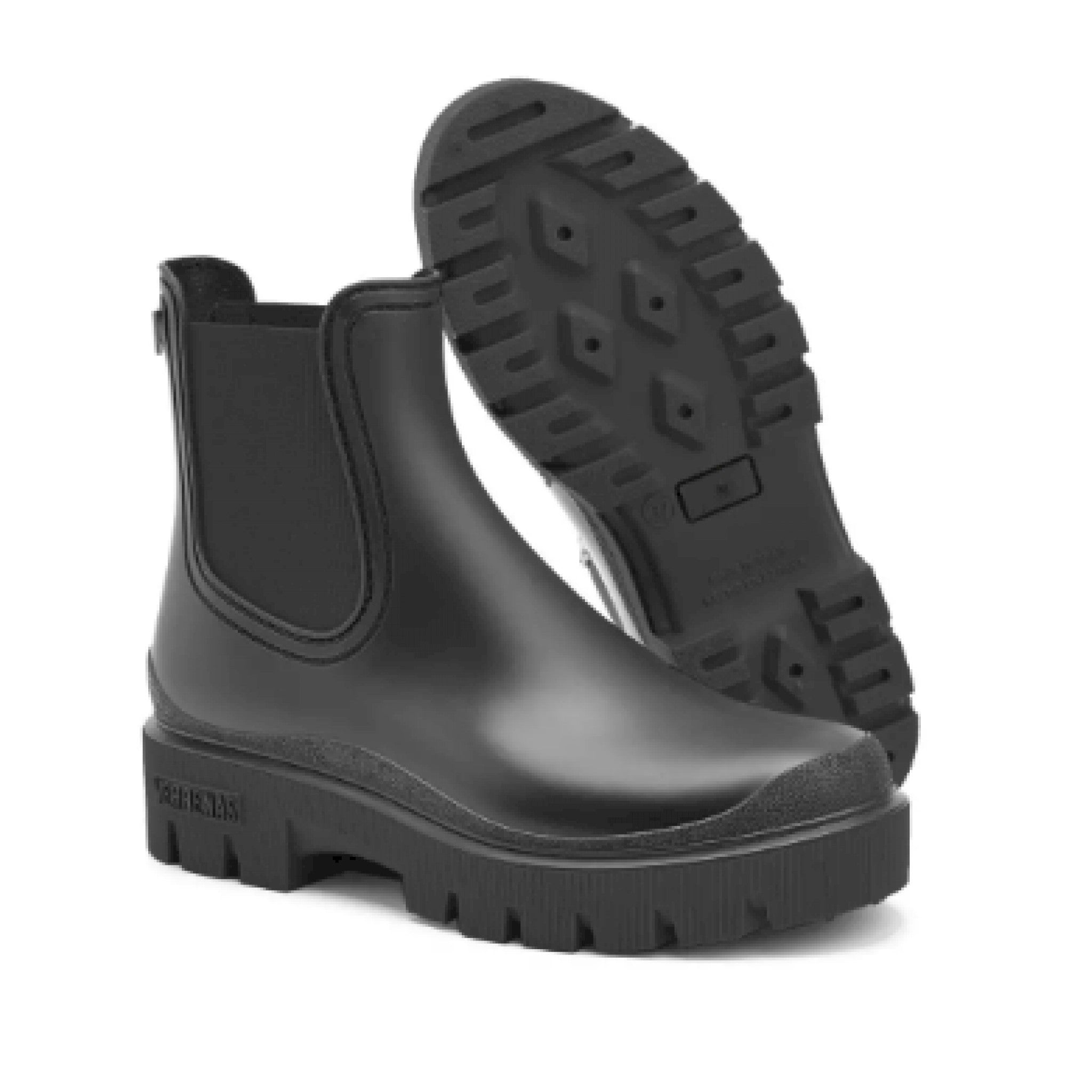 Le nostre scarpe da ginnastica mae mate in nero con tomaia sintetica, fodera e suola in tessuto e suola in gomma. realizzate in spagna. gli stivali con suola cingolata più trendy per i giorni di pioggia.