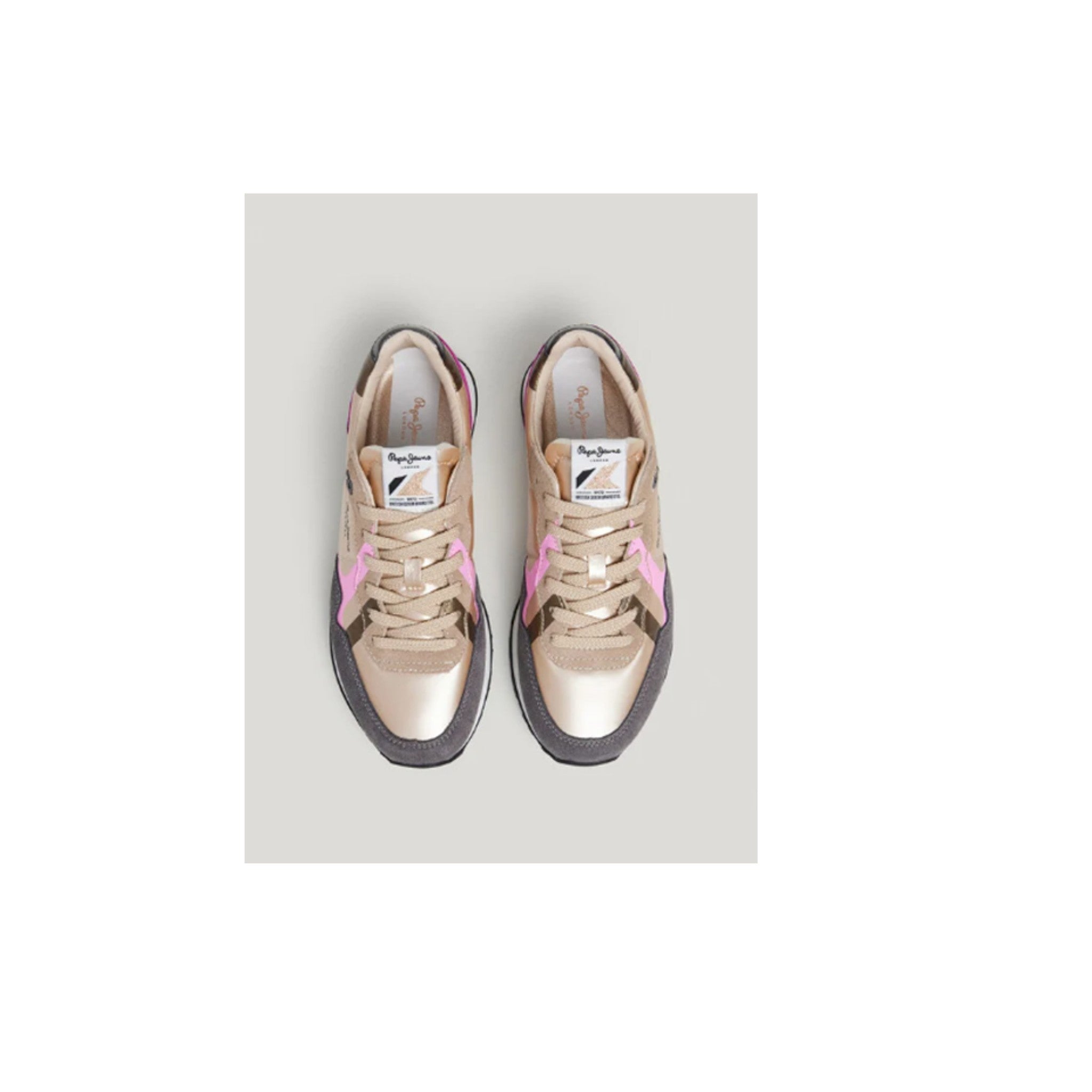 - scarpe da running ispirazione retrò - combinazione di tessuti - colori a contrasto - chiusura con lacci - dettagli imbottiti sui lati - dettagli scamosciati su punta, contrafforte e tallone - soletta estraibile in schiuma termoformata - logo pepejeans termosaldato sul lato - intersuola in eva extra leggera bicolor - suola in gomma con trazione e ammortizzazione
