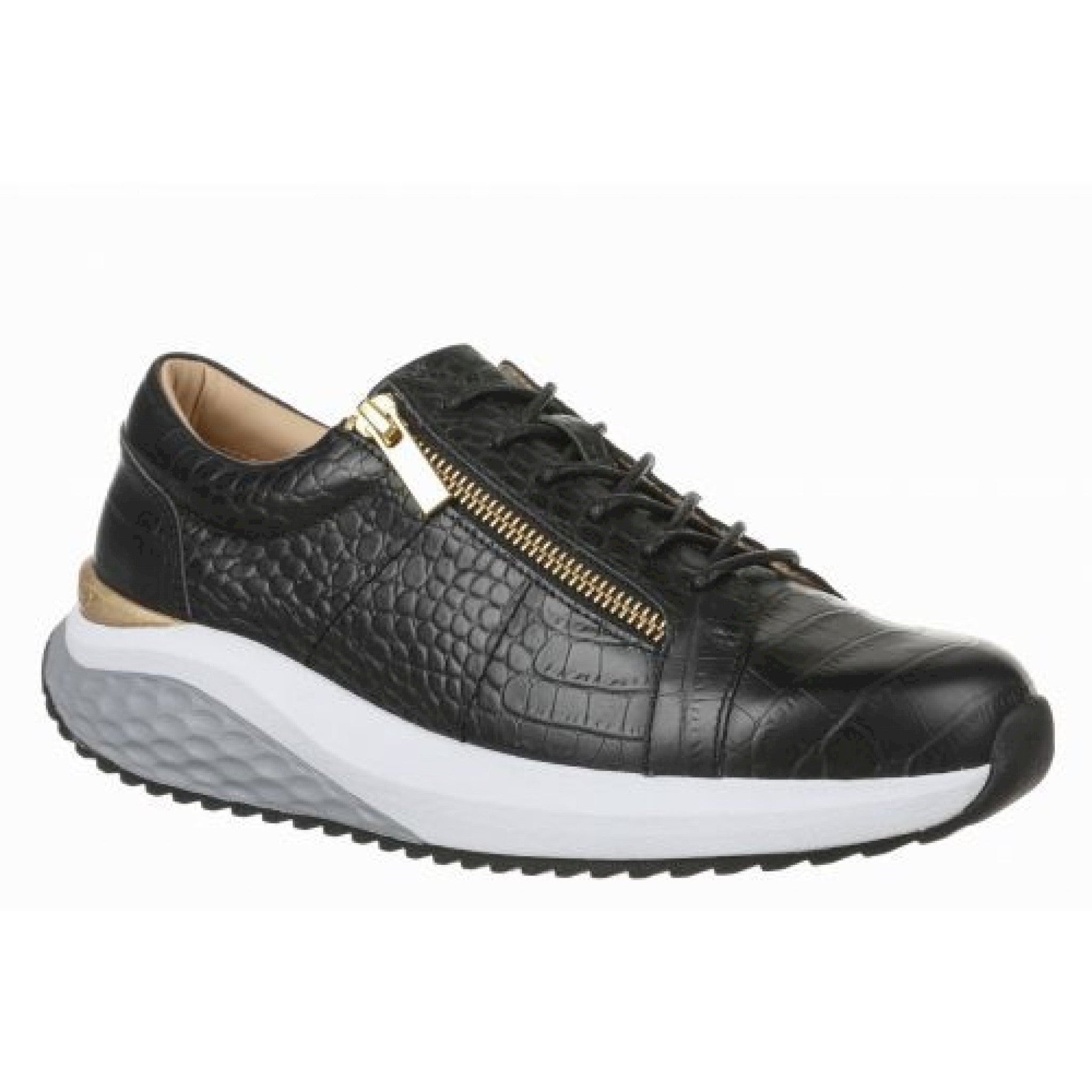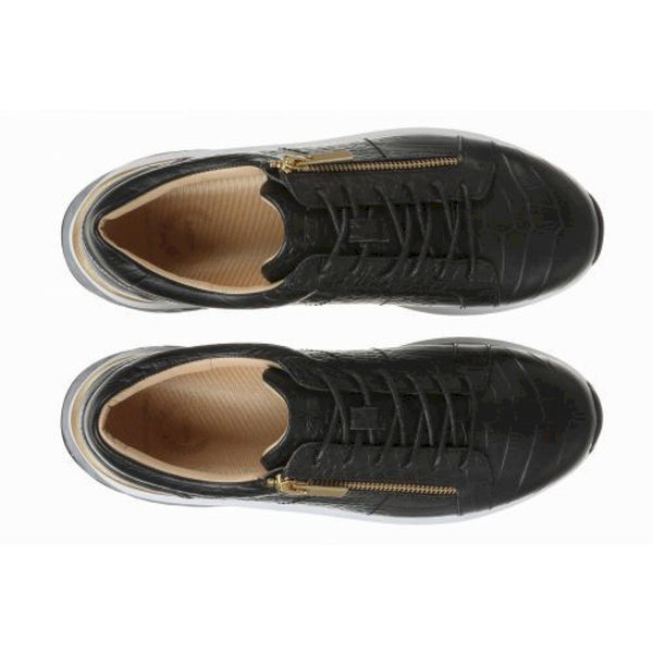 Queste eleganti trainers da donna sono realizzate in vera pelle goffrata, con stampa ad imitazione rettile, a dimostrazione di uno stile moderno ed unico. una scarpa tradizionale con lacci, con aggiunta di cerniere metalliche, rende molto facile indossarle e toglierle. dispone inoltre di un suoletta in pu, con un buon assorbimento degli urti, ed alta traspirabilità, assicurando ai tuoi piedi eleganza e comoditá durante tutte le attivitá quotidiane.