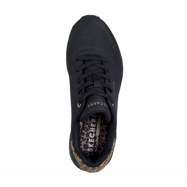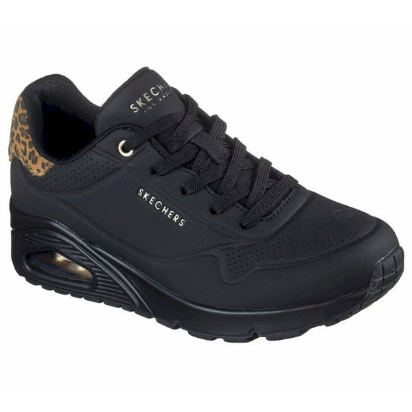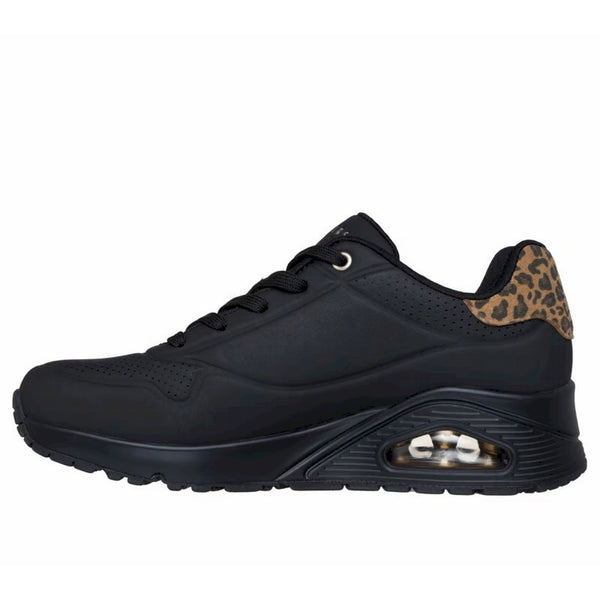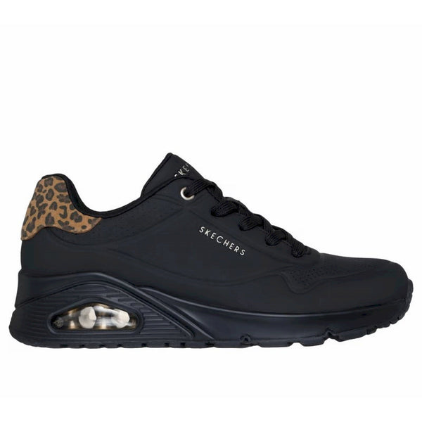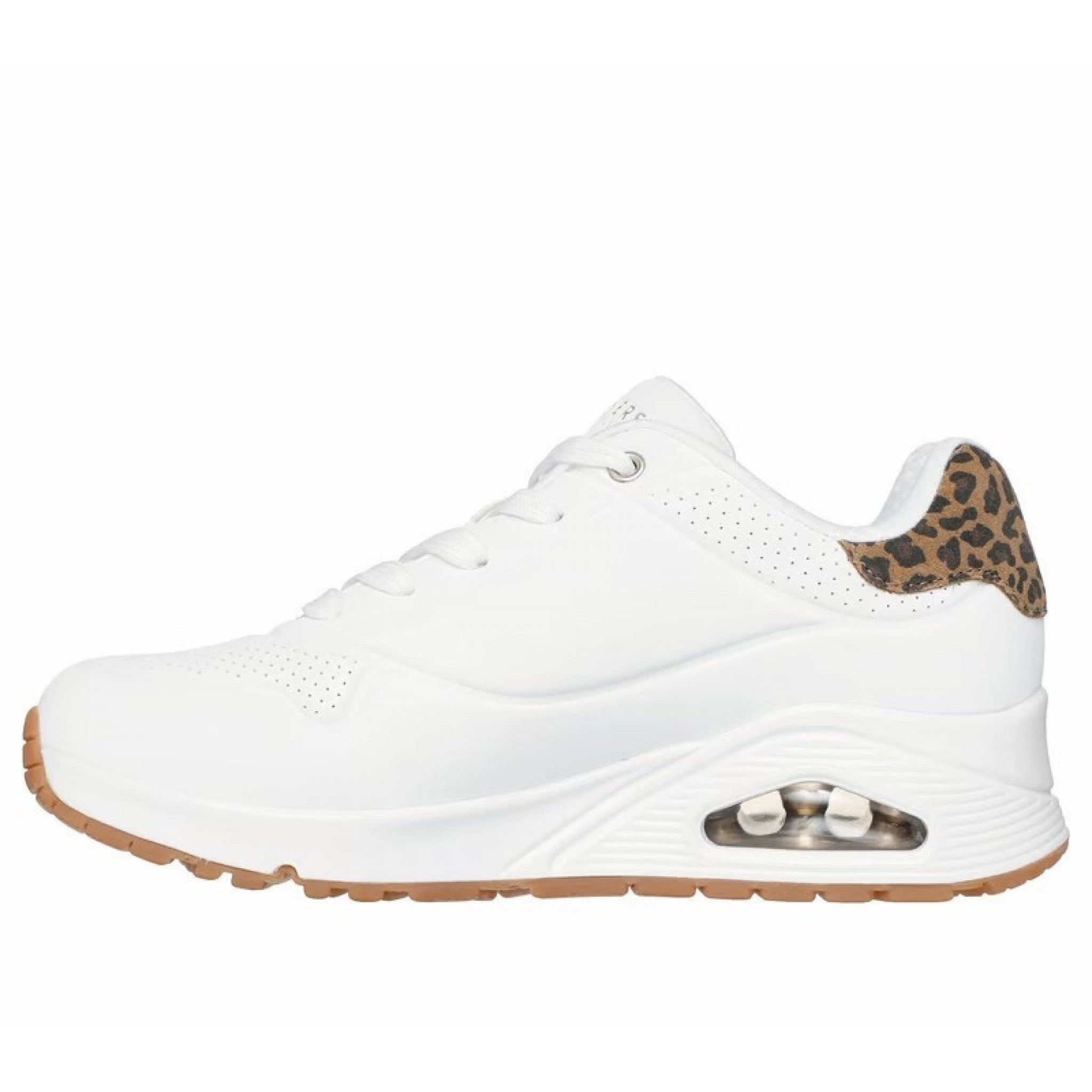 Prova il comfort e il look audace di skechers street™ uno - jungle nite. questa sneaker fashion allacciata presenta una tomaia in materiale tecnico con applicazione a stampa leopardata sul tallone, una soletta skechers air-cooled memory foam® e un’intersuola con ammortizzazione ad aria visibile skech-air®.