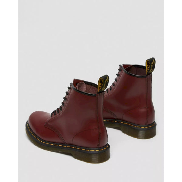 Lo stivale 1460 a 8 occhielli è il nostro stivale original dr. martens. nato il primo aprile 1960 (1/4/60: l'origine del nome), è immediatamente riconoscibile grazie alle sue caratteristiche cuciture gialle, la suola scanalata e la linguetta airwair. grazie alla sua comodità e resistenza, questo stivale era inizialmente prediletto da lavoratori essenziali, le cui mansioni prevedevano lunghe ore in piedi. oggi, è pietra miliare nello stile di musicisti e seguaci della moda di tutto il mondo, che hanno portato lo stivale dalle strade al centro del palco. ovunque. la punta larga e arrotondata e la suola con cuscinetto d'aria garantiscono una comodità che dura tutto il giorno, dall'alba al tramonto. e oltre ancora. la pelle smooth con cui è realizzato si modella intorno alla forma del piede. uno stivale che può considerarsi davvero tuo e tuo soltanto.