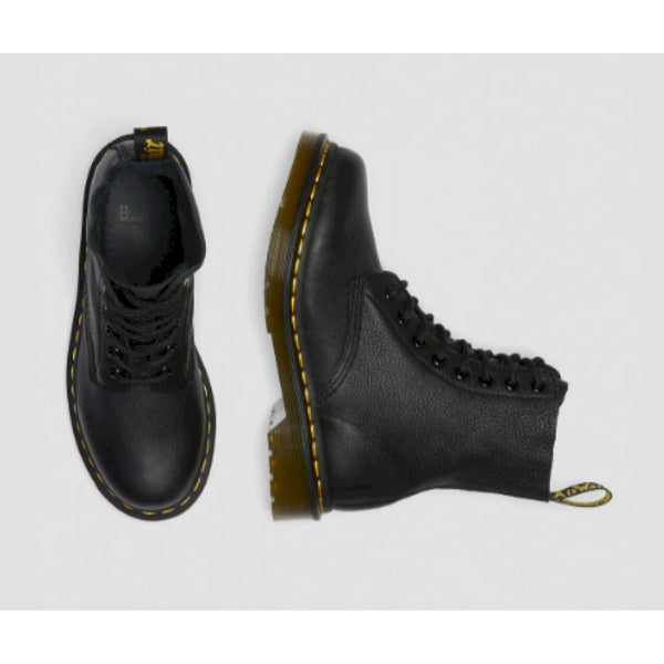 virginia è una morbida pelle a grana fine che viene trattata per renderla liscia e morbida. puliscila con un panno umido e prenditene cura con il lucido per scarpe dr. martens