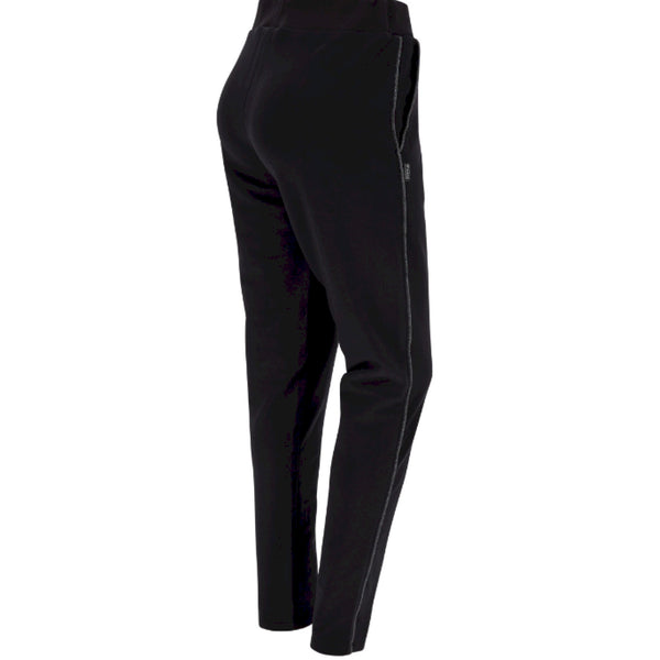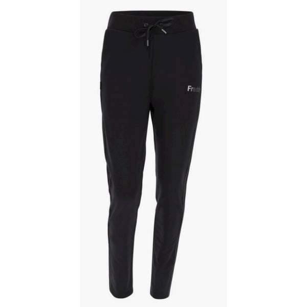 Antaloni sportivi con taglio a sigaretta in morbida e avvolgente felpa garzata, ideali per lo sport ma anche per il tempo libero che predilige il comfort. il modello ha vita in costina regolabile con coulisse in tono colore, tasche frontali e vestibilità regular. il piping con filo lurex che percorre lateralmente le gambe e borda le tasche si unisce alla stampa freddy in colore metal gun sotto la tasca