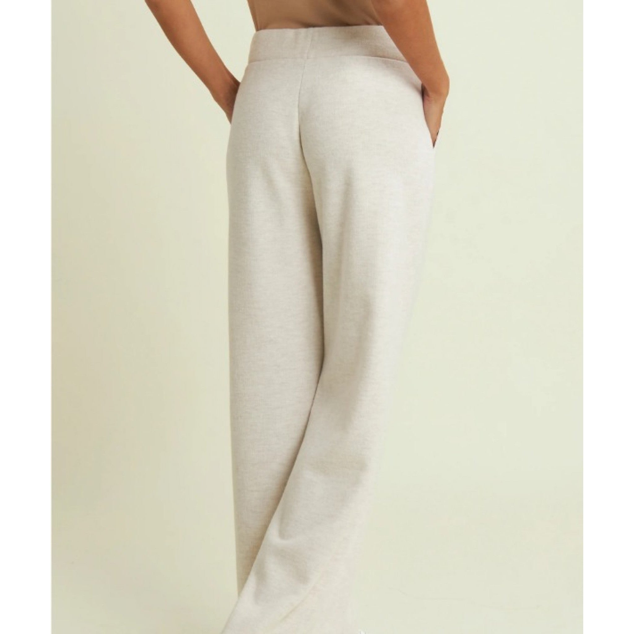 Pantaloni wide leg da donna, dalla vestibilità ampia e regolare, realizzati in felpa garzata elasticizzata effetto tricot. questo tessuto combina morbidezza, elasticità e l’aspetto raffinato della maglieria, assicurando massimo comfort e calore. vita regolabile con coulisse, pratiche tasche alla francese e placchetta logo freddy sul bordo tasca sinistra.