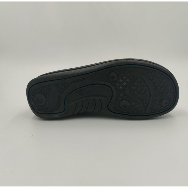 il laccio nero arrotondato passa attraverso 4 occhielli per chiudere la scarpa bassa da uomo g comfort in pelle nera.