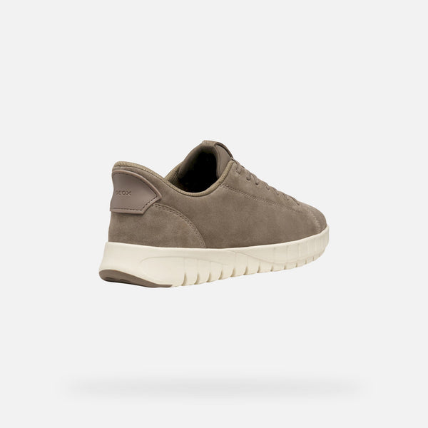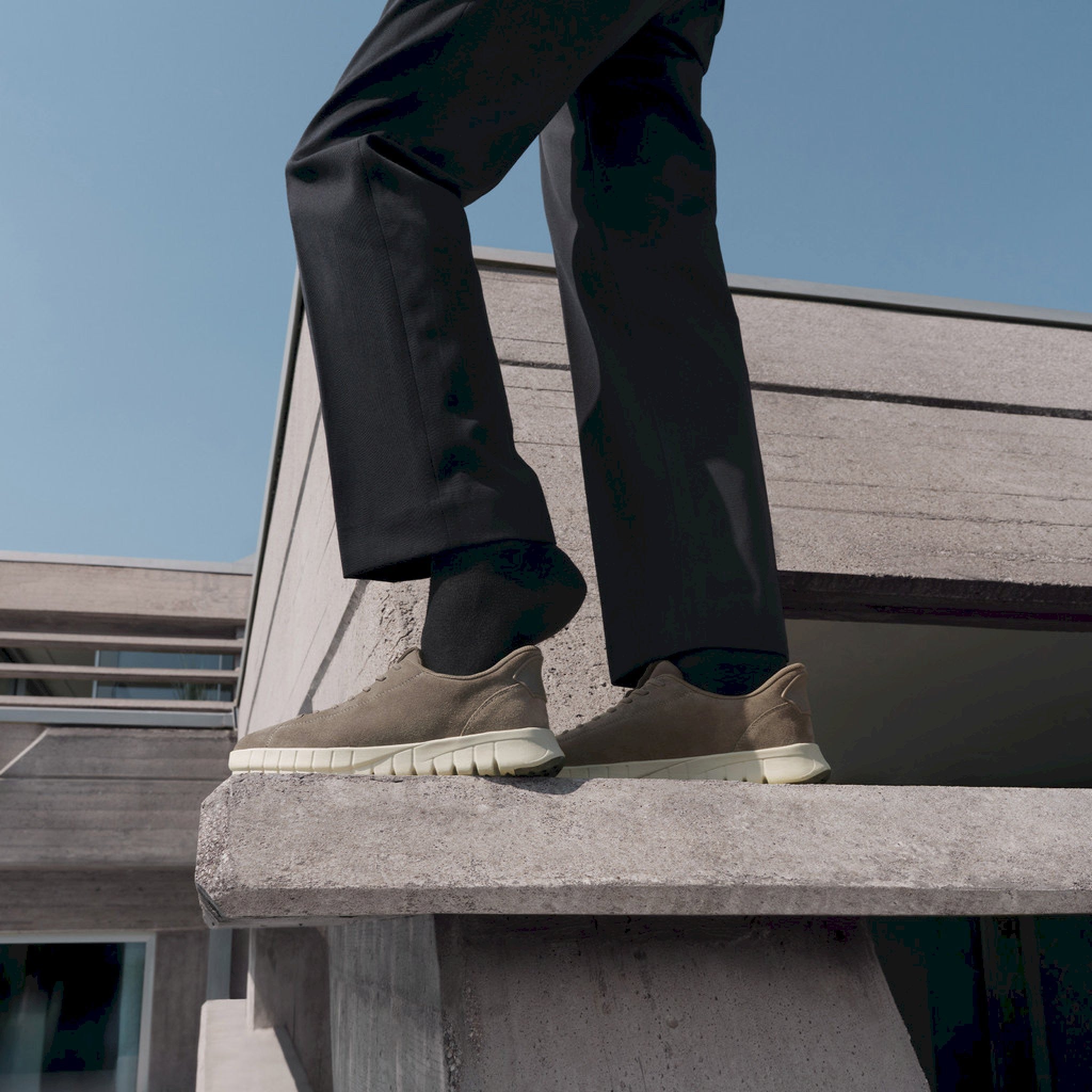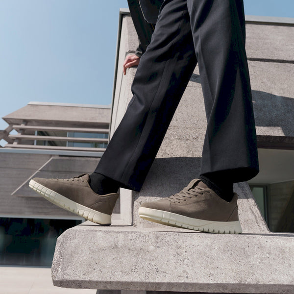 Sneaker uomo dotata di un sistema che permette di indossarla con facilità e velocità, senza necessità di usare le mani. realizzata in morbido scamosciato taupe, si distingue per la sua estetica contemporanea dalle linee pulite che unisce funzionalità e ricercatezza. flextride plus è l'alleato perfetto per affrontare con stile la quotidianità cittadina, valorizzando ogni look informale.
