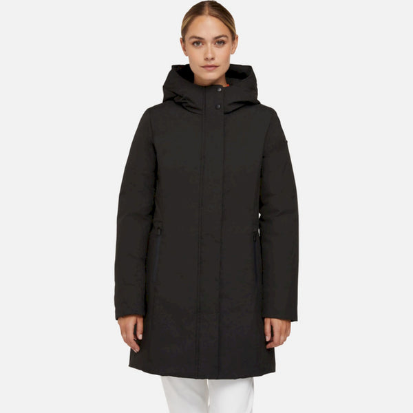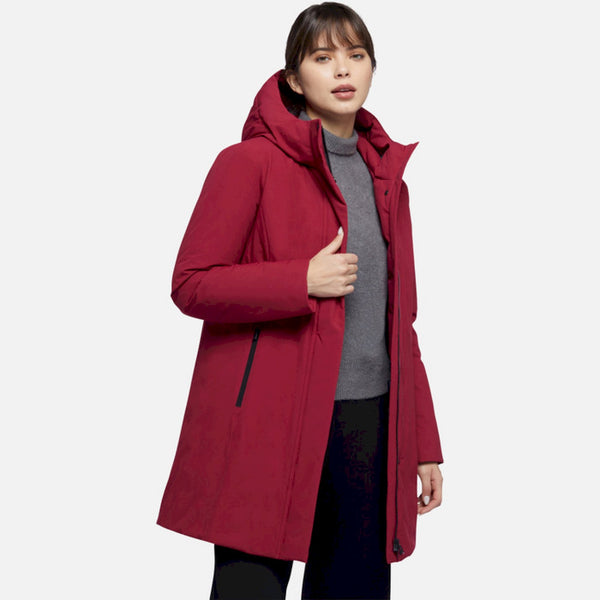 Giacca 3/4 donna idrorepellente ed antivento con cappuccio protettivo, ideale anche in caso di maltempo. confortevole e traspirante, è realizzata in tessuto soft shell di poliestere riciclato. con la sua calda imbottitura sostenibile spherica™ è un moderno parka dal dna 100% green.