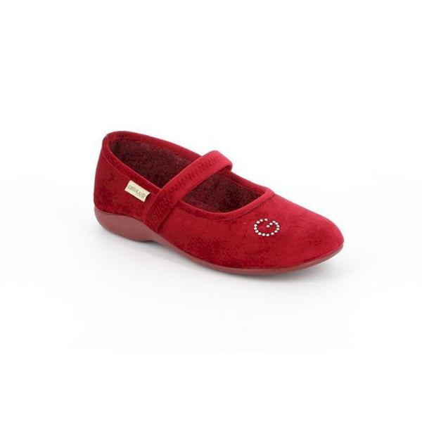Pantofola a ballerina in velluto, grazie alla fascia elastica, sono semplici da indossare, confortevoli e leggermente alzate grazie al tacco in gomma antiscivolo, impreziosita dagli strass in punta.