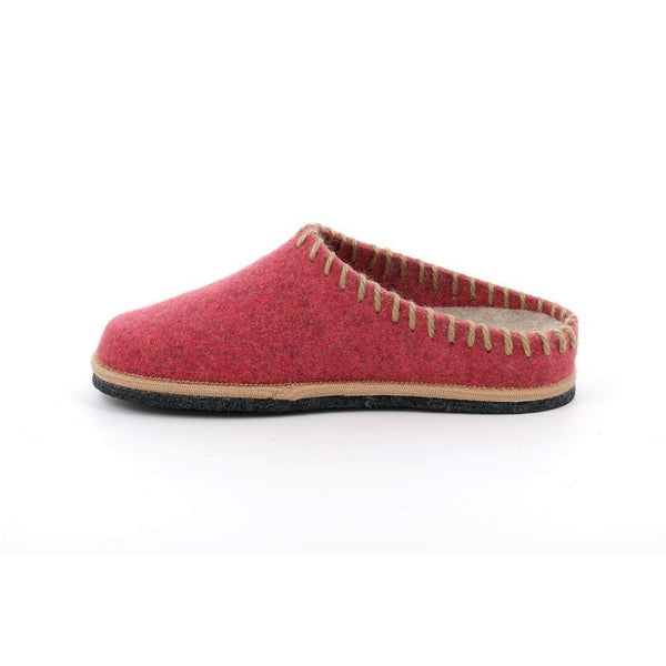 Tomaia in feltro di vera lana e fondo in feltro antigraffio, immancabile per chi ha una pavimentazione di casa in legno. questa ciabatta è calda, traspirante e naturalmente made in grünland!
