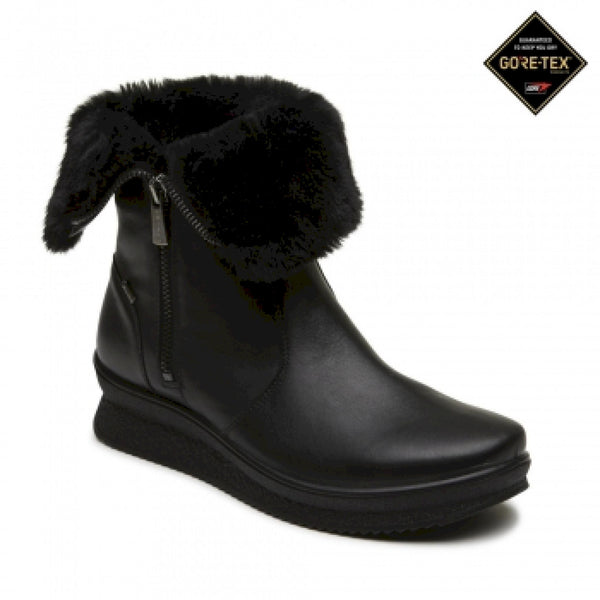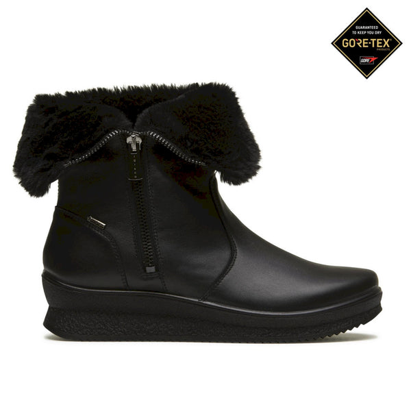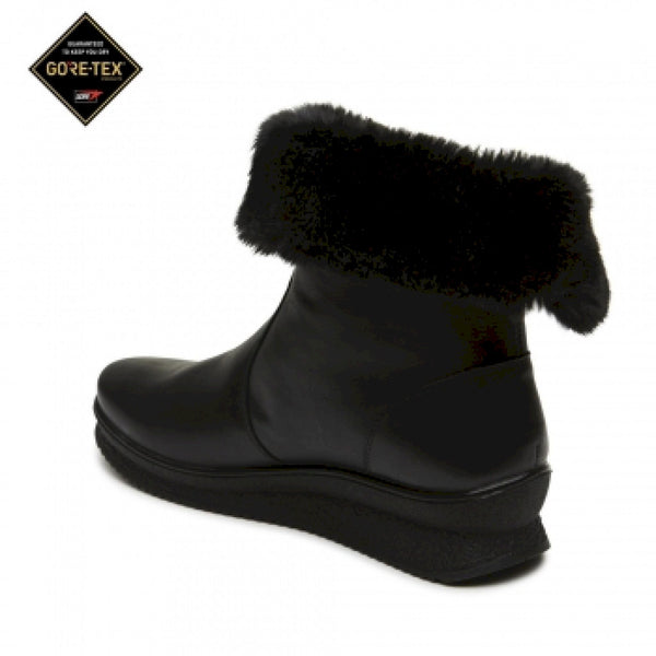 Con questi stivaletti in pelle foderati in calda pelliccia ecologica e con tecnologia gore-tex non si teme l'inverno. l'altezza del gambale può essere regolata a piacimento per abbinarli al meglio all'outfit scelto. la suola rialzata è particolarmente adatta a tenere il piede isolato dal terreno ed è al contempo estremamente flessibile. il piede appoggia su un caldo plantare che può essere estratto per una maggiore igiene.