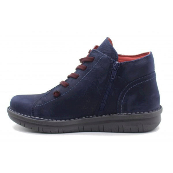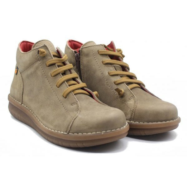 Polacco con impunture a contrasto beige. chiusura con lacci e zip laterale. piede asciutto, antibatterico, termoregolatore, ipoallergenico, antiodore, resistente e cromo free. tomaia in pelle, interno in tessuto e suola in gomma