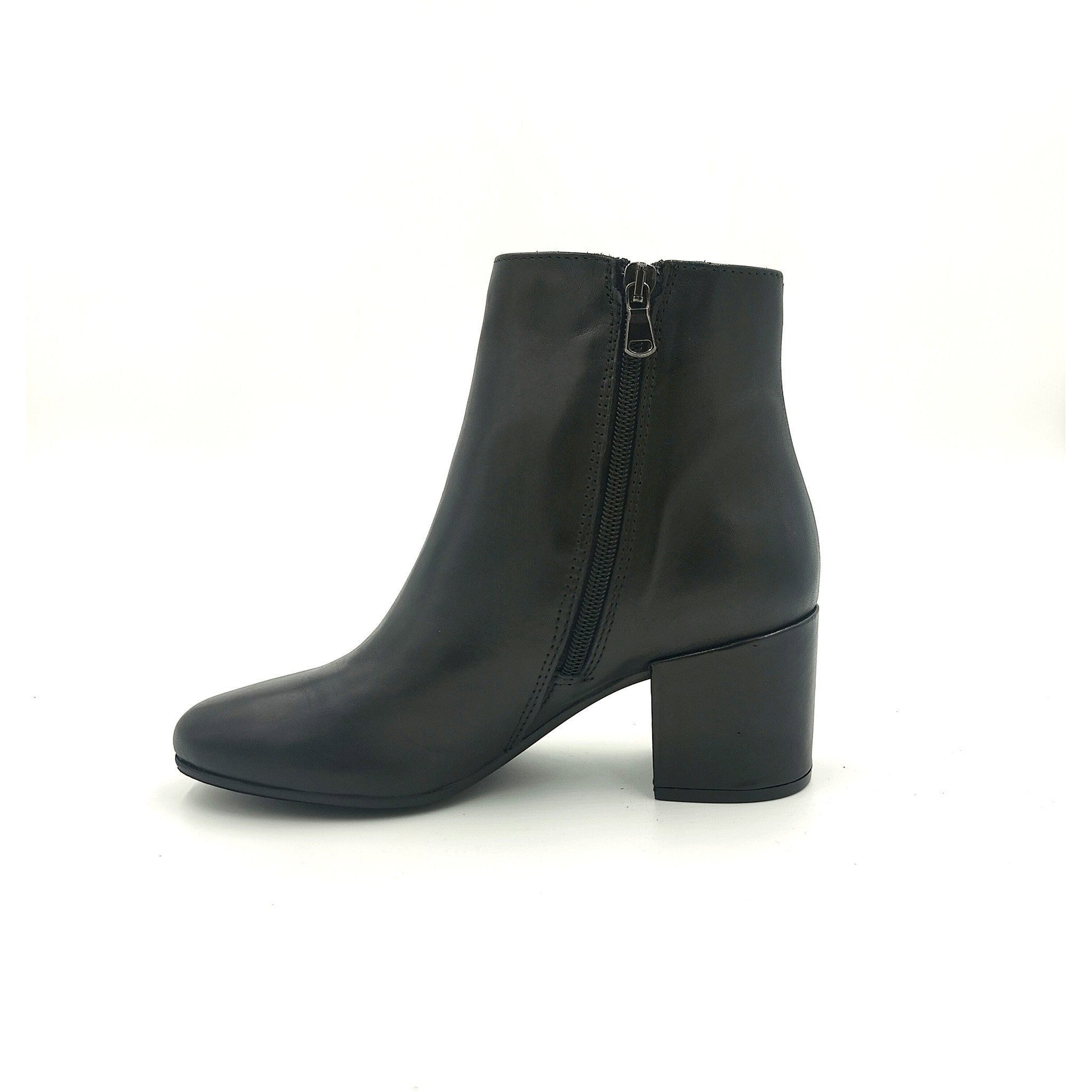 Stivaletto c/cerniera in pelle e tacco