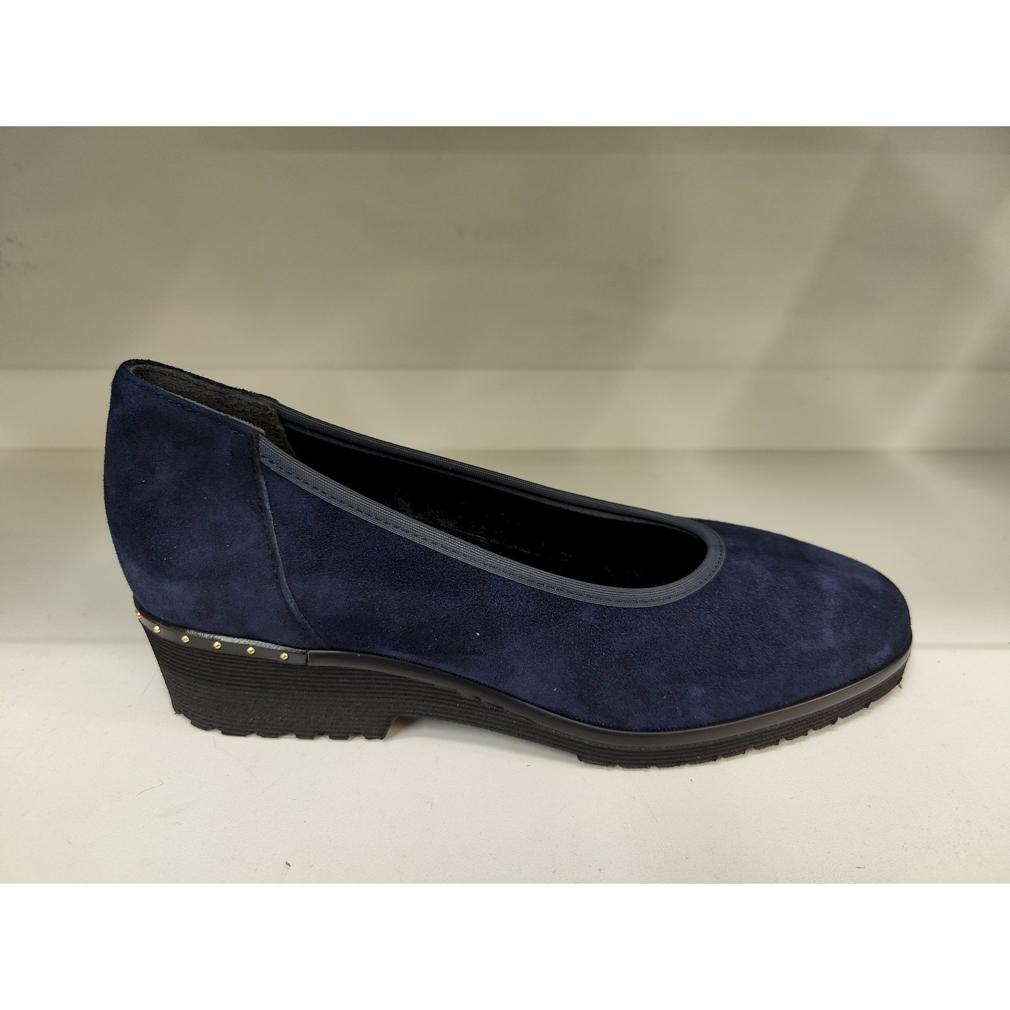 Decolte' in camoscio con zeppa f.do carroarmato , plantare estraibile