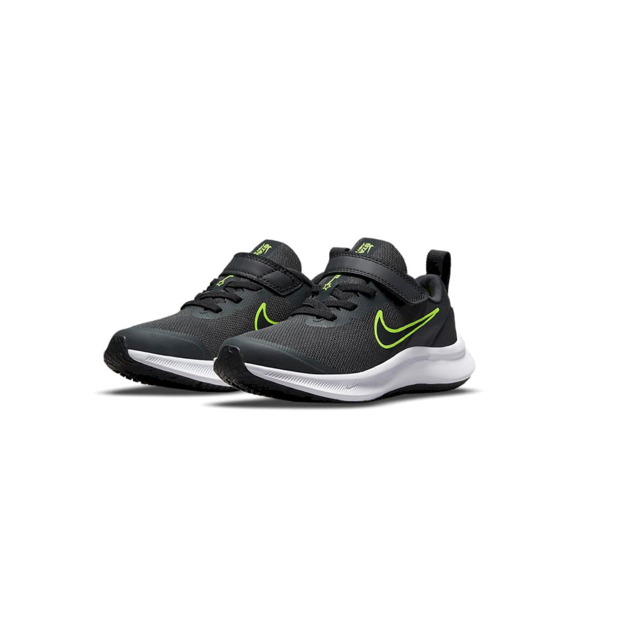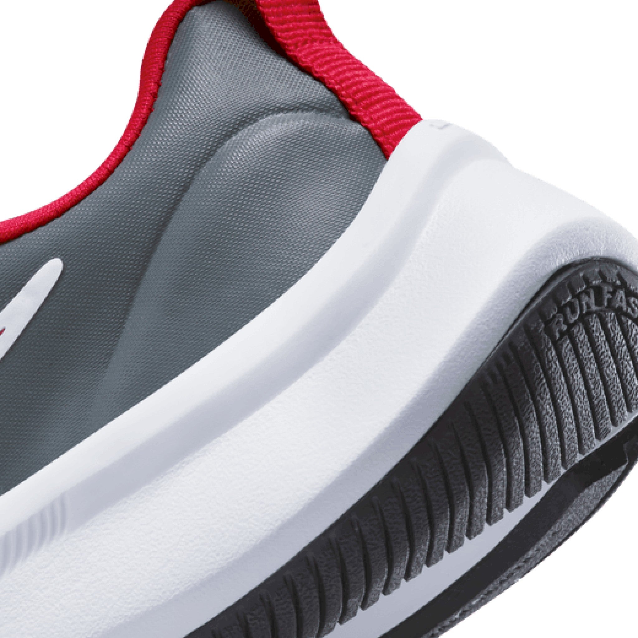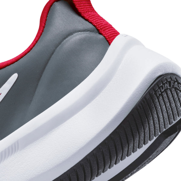 la scarpa nike star runner 3, nata per correre e saltare, ha come unico limite il cielo. abbiamo aggiunto una fascetta per toglierla in modo semplice e una schiuma ultramorbida per una flessibilità e un comfort eccezionali. pensata con un occhio al pianeta, è realizzata con almeno il 20% di contenuto riciclato.