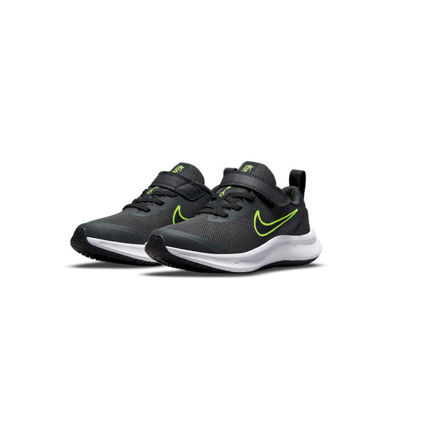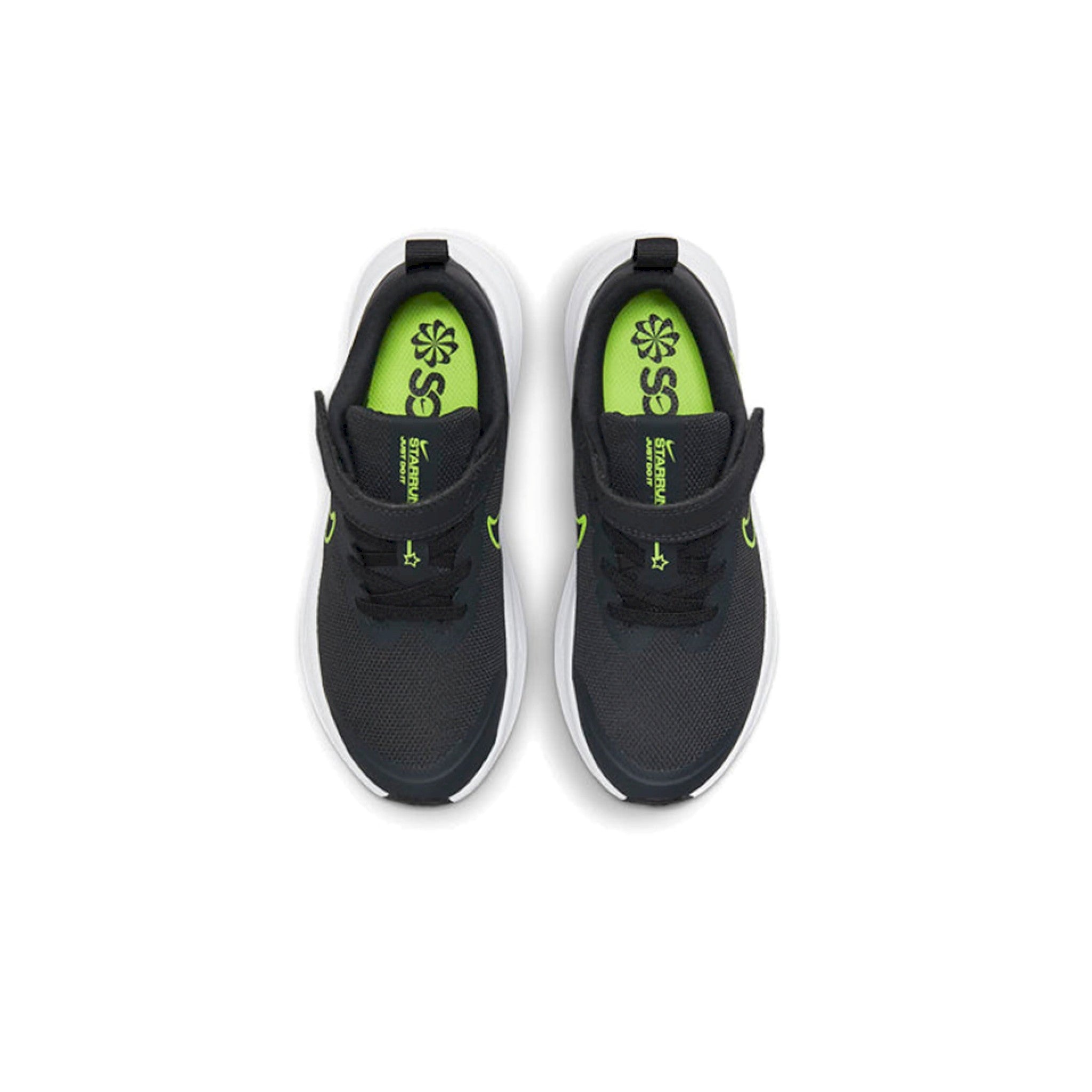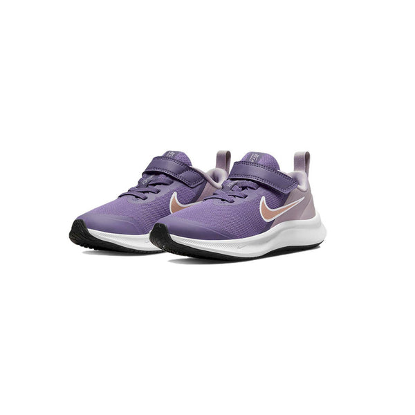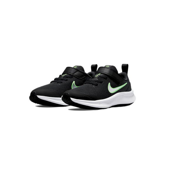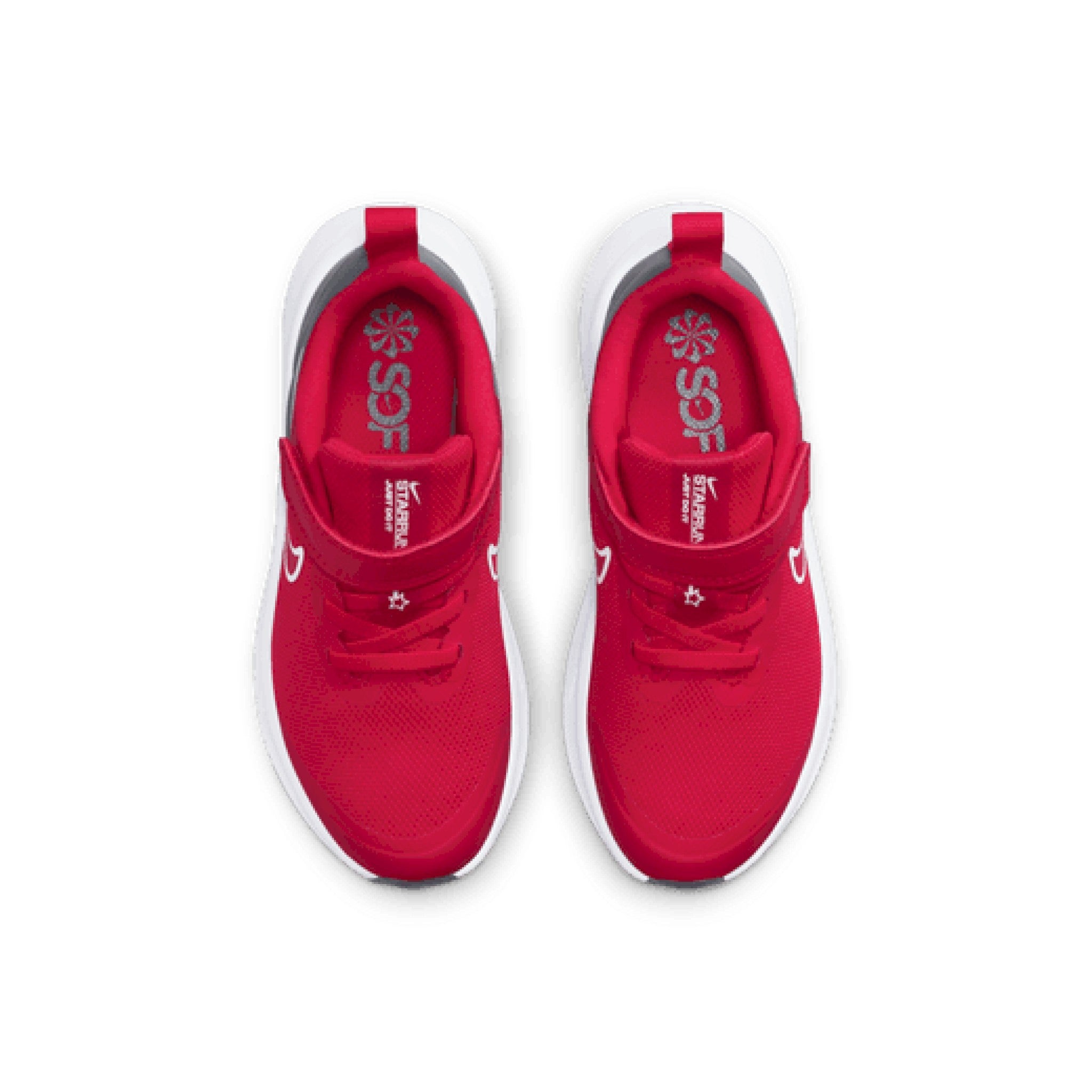 la scarpa nike star runner 3, nata per correre e saltare, ha come unico limite il cielo. abbiamo aggiunto una fascetta per toglierla in modo semplice e una schiuma ultramorbida per una flessibilità e un comfort eccezionali. pensata con un occhio al pianeta, è realizzata con almeno il 20% di contenuto riciclato.