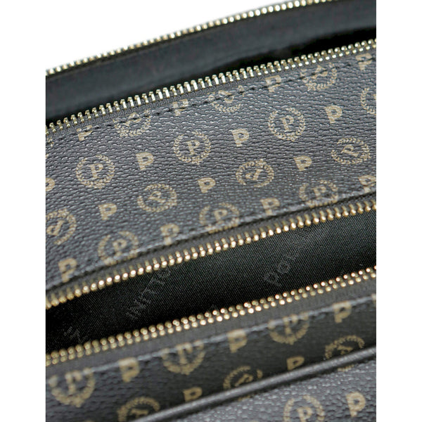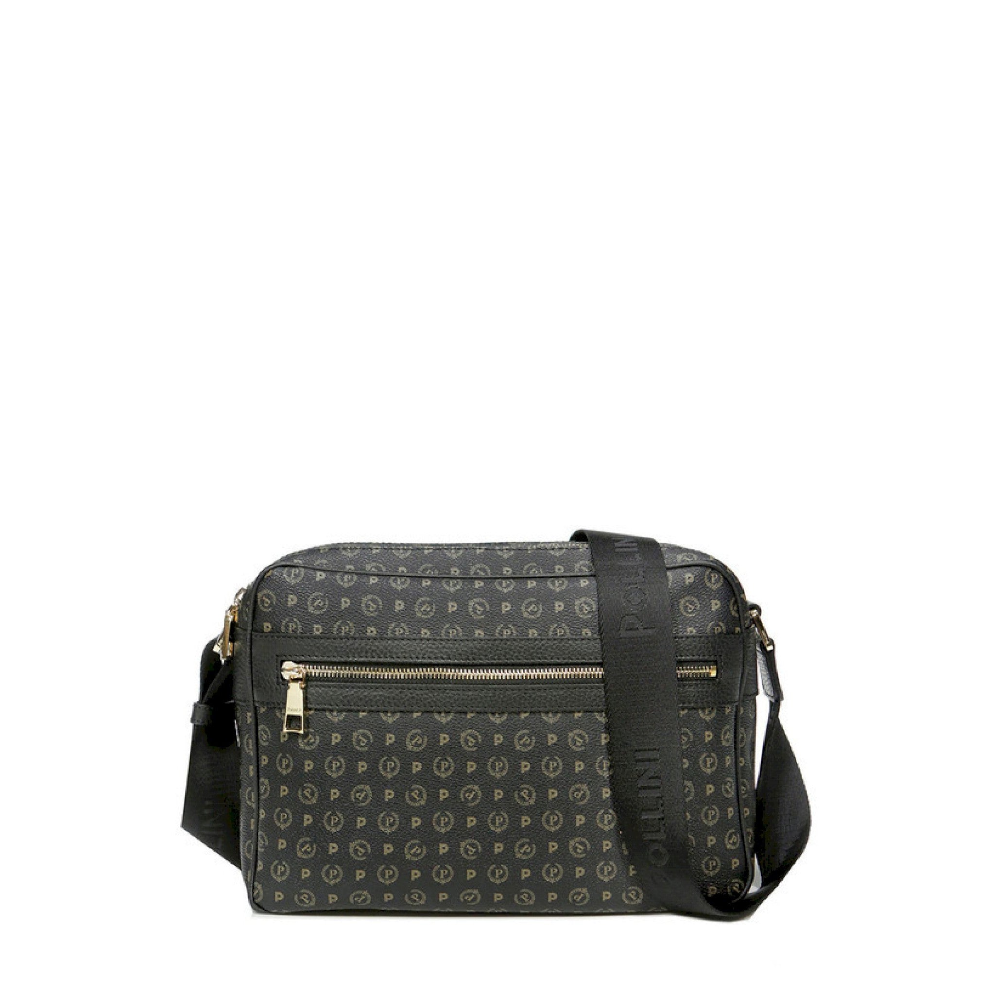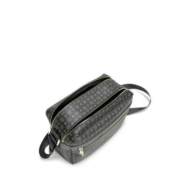 Tracolla in ecopelle stampa all over e riporti in pelle, con doppio scomparto chiusi entrambi con zip.