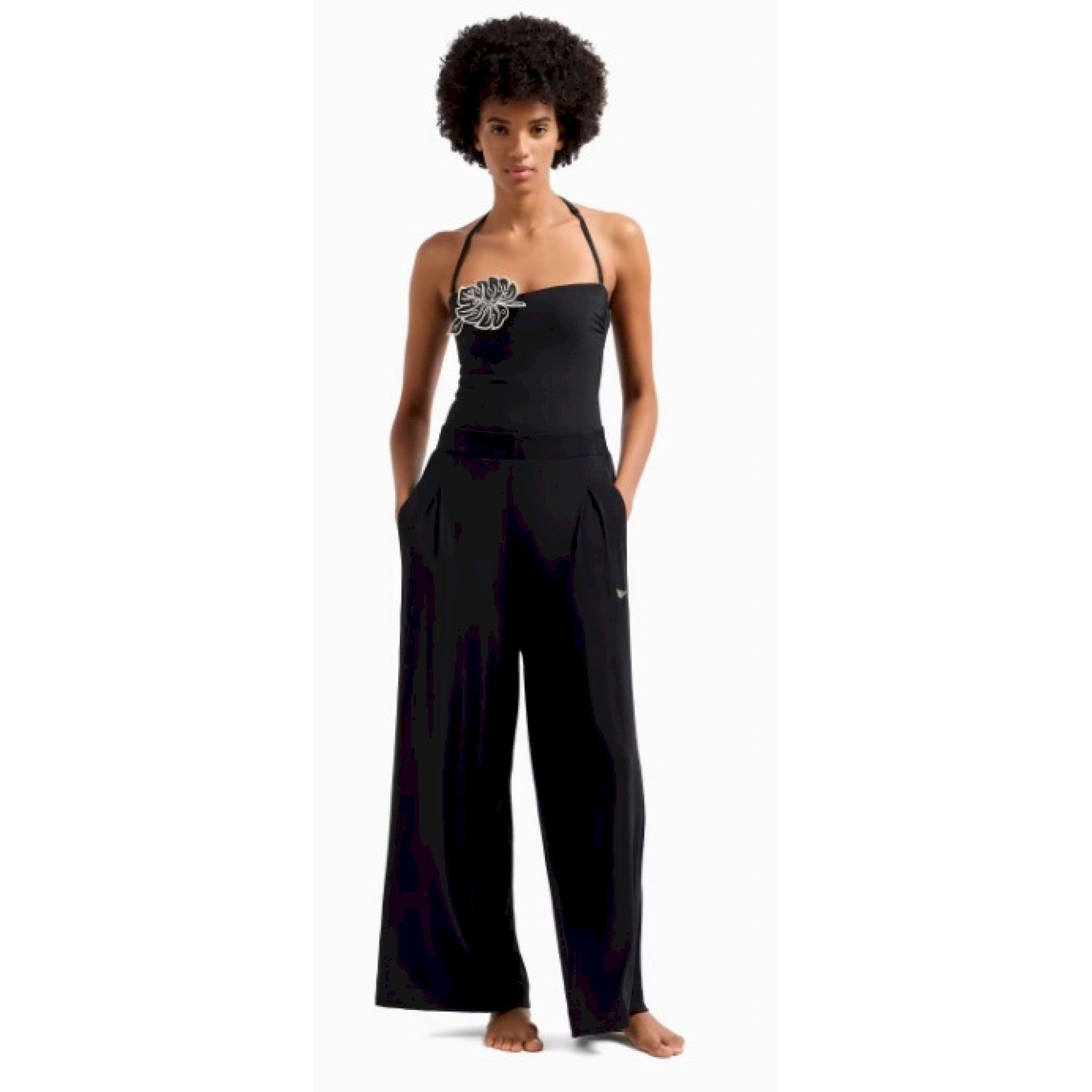 Armani pantaloni essential in viscosa con borchie con logo