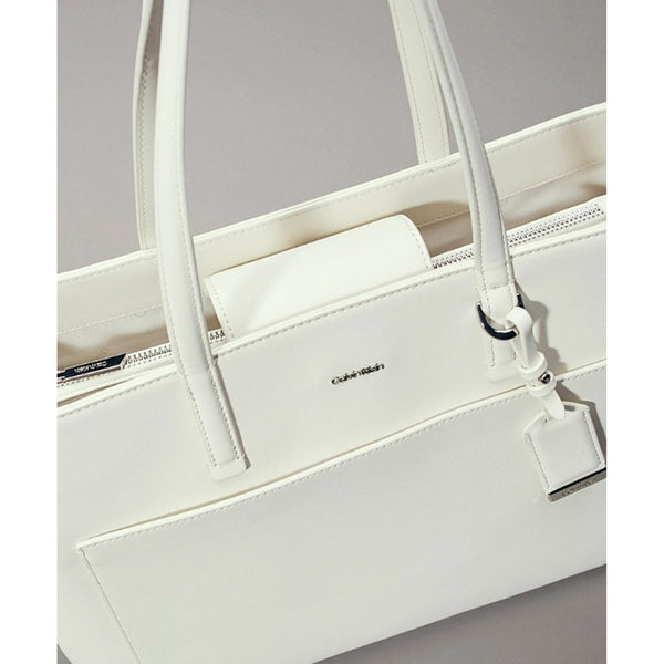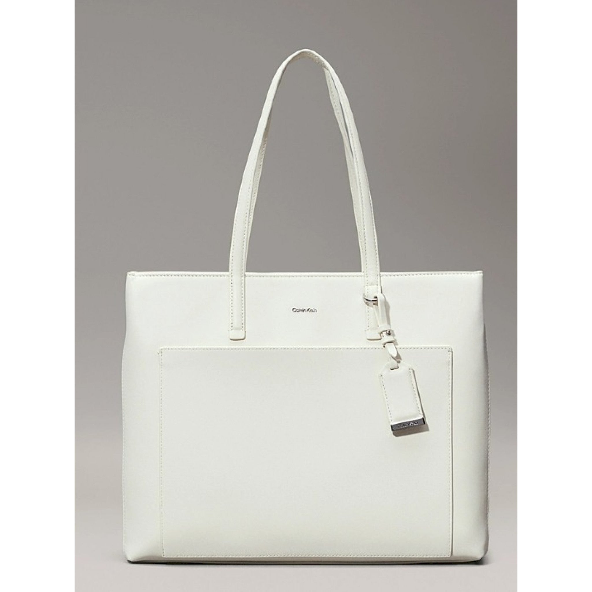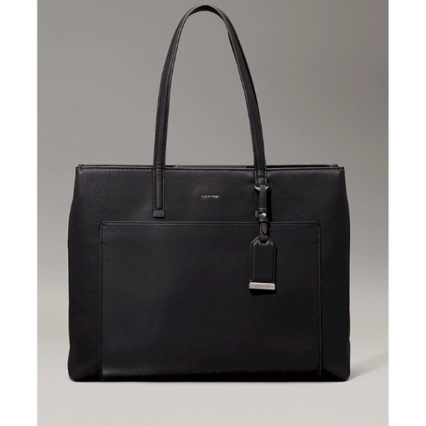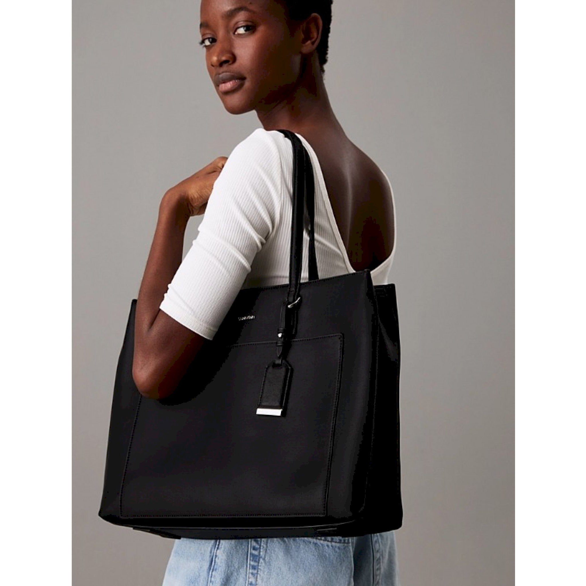 L'esterno della borsa tote è realizzato con il 51% di poliestere riciclato, ottenuto dalla rielaborazione di materiali esistenti.