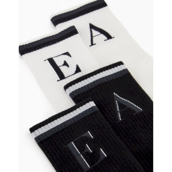 Pack composto da 2 paia di calze realizzate in spugna di cotone con doppio logo jacquard. tessuto: 70% cotone, 25% poliammide, 5% elastan made in italy