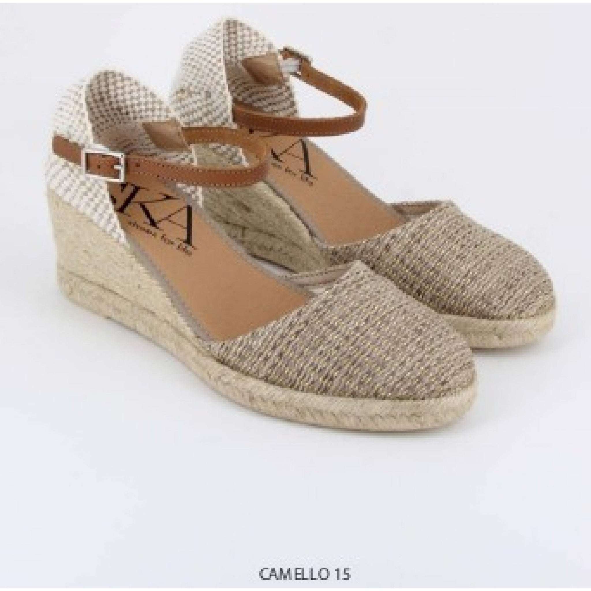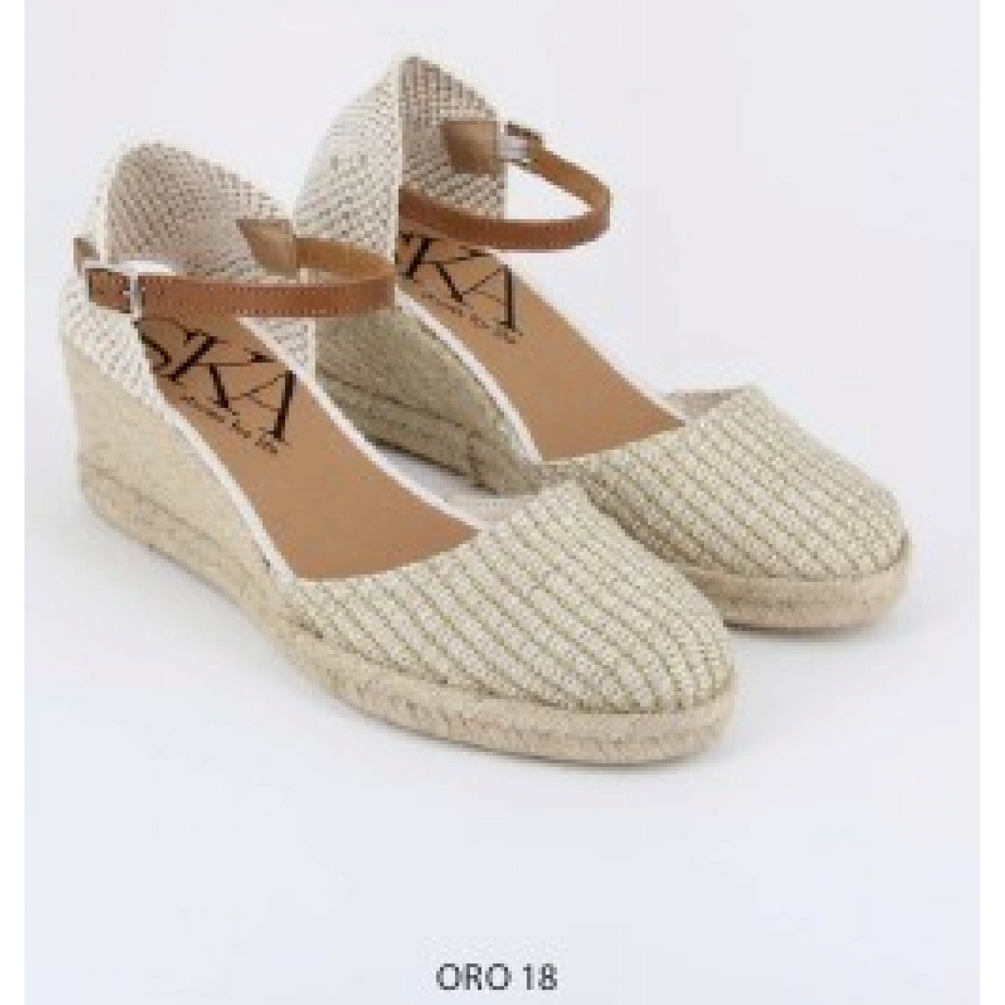 Minerva espadrillas in pelle scamosciata con cinturino alla caviglia, zeppa in iute naturale alta 5 cm e plateau di 1 cm.