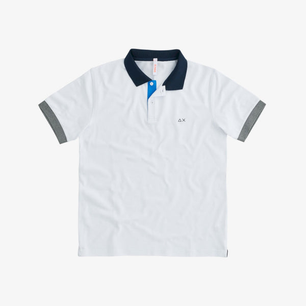 Polo in piquet di cotone con logo ricamato sul petto e maxi bordo a contrasto sul bordo manica e collo. 95% cotone, 5% elastan