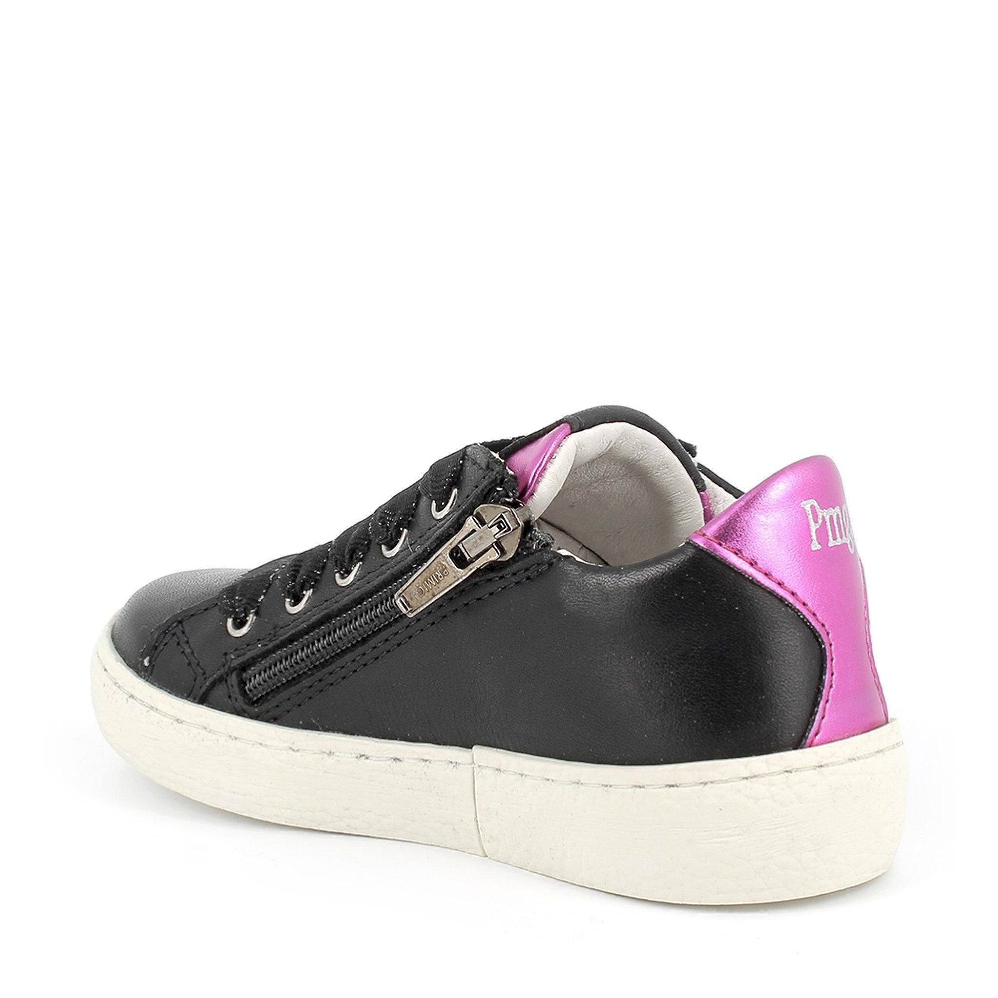 Sneaker in pelle nera con stella e brillanti e zip laterale